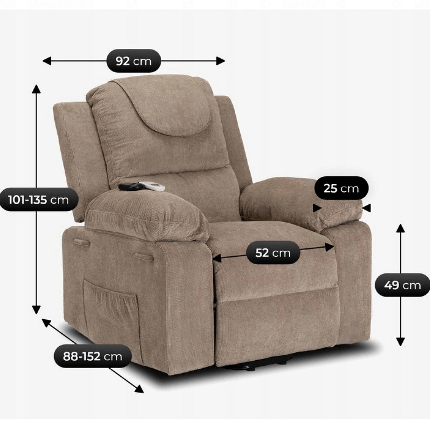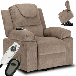 Elektricky polohovatelné masážní křeslo FENIX s funkcí vstávání Béžové