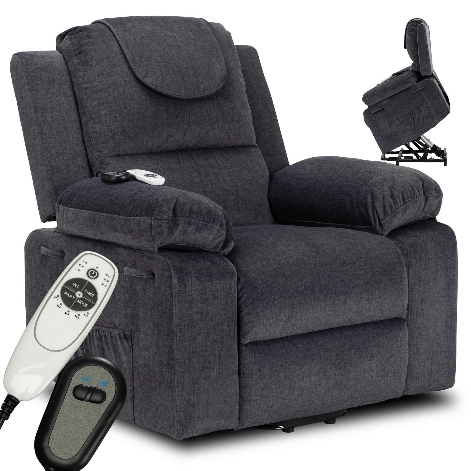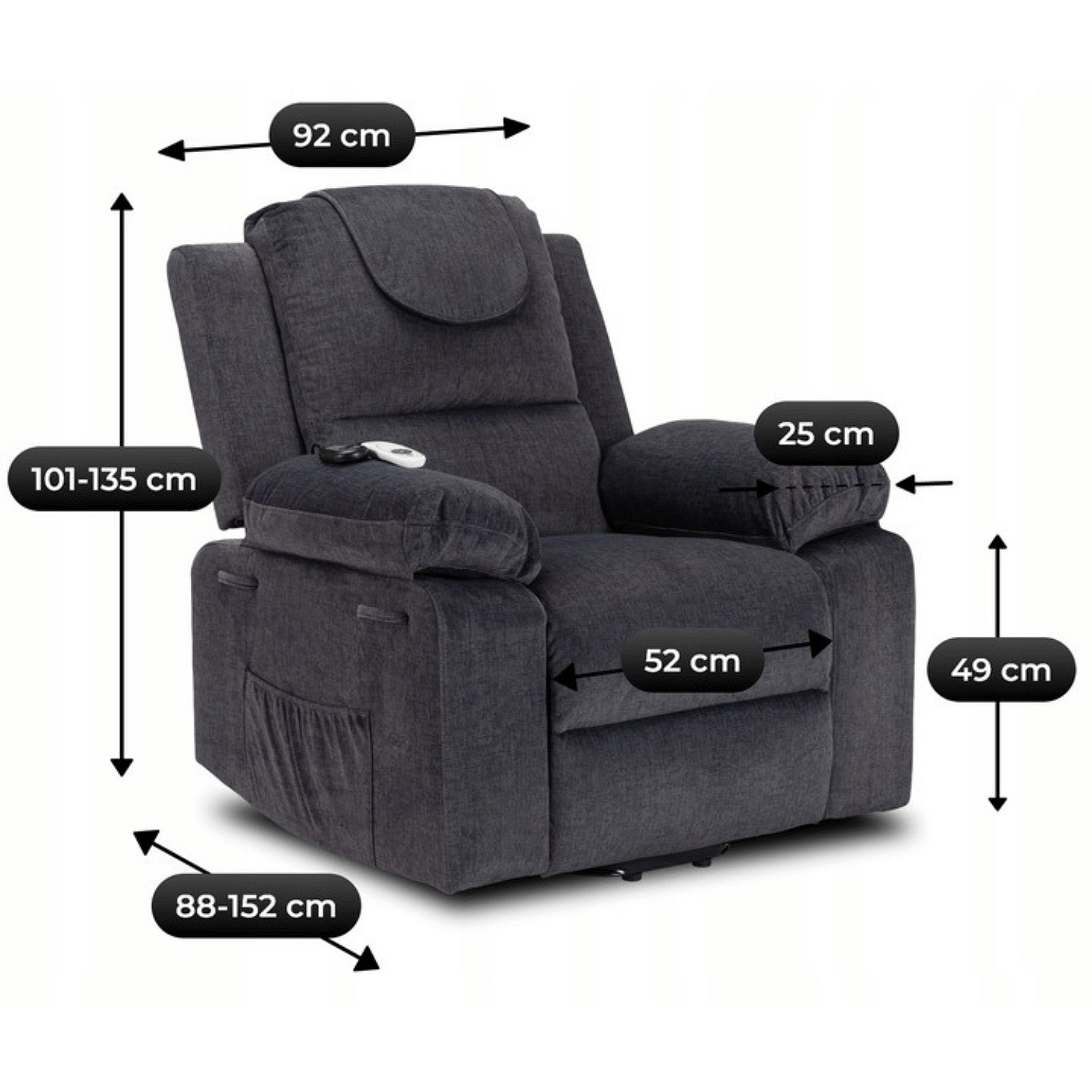 Elektricky polohovatelné masážní křeslo FENIX s funkcí vstávání Tmavý popel