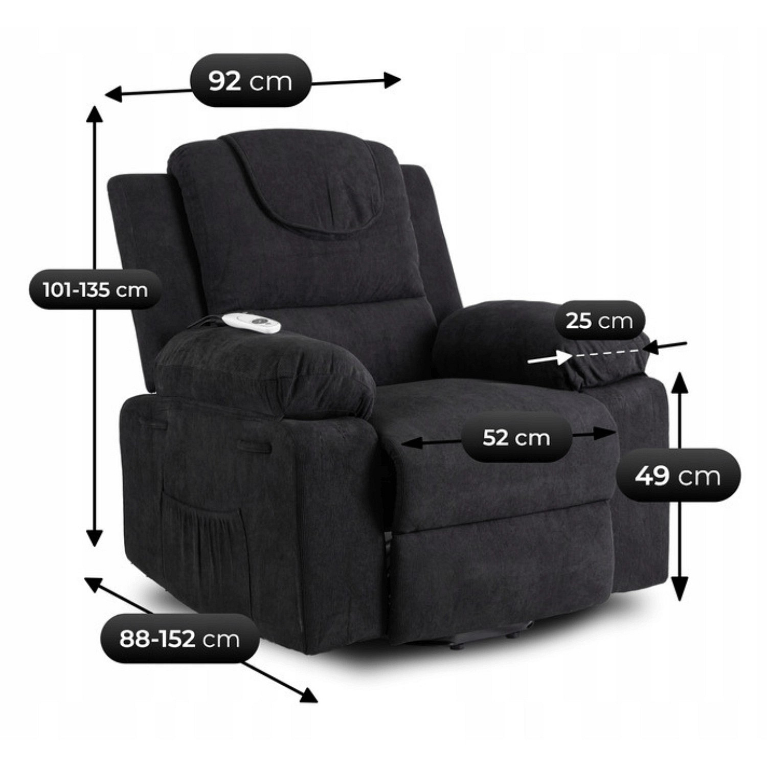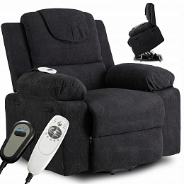 Elektricky polohovatelné masážní křeslo FENIX s funkcí vstávání Černé