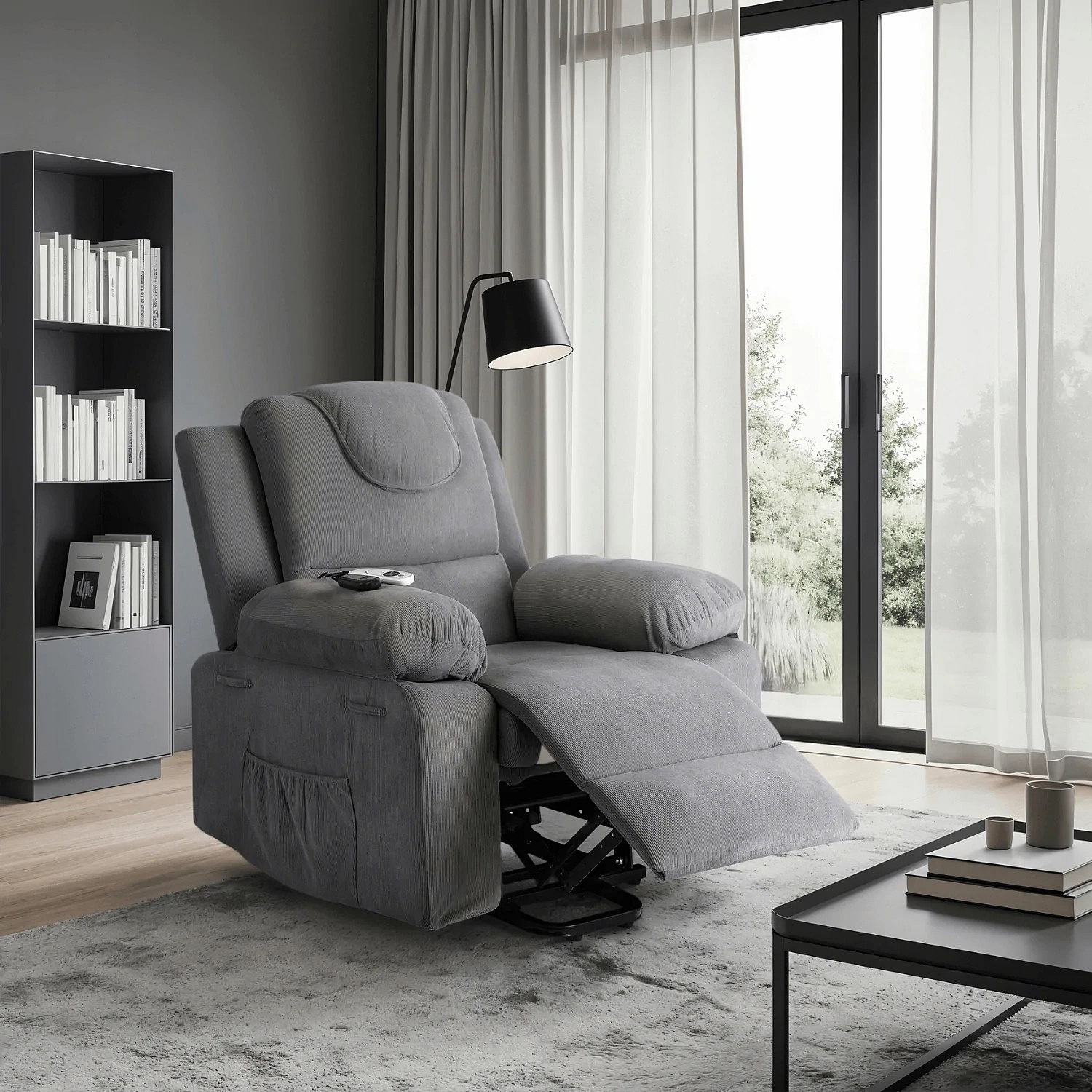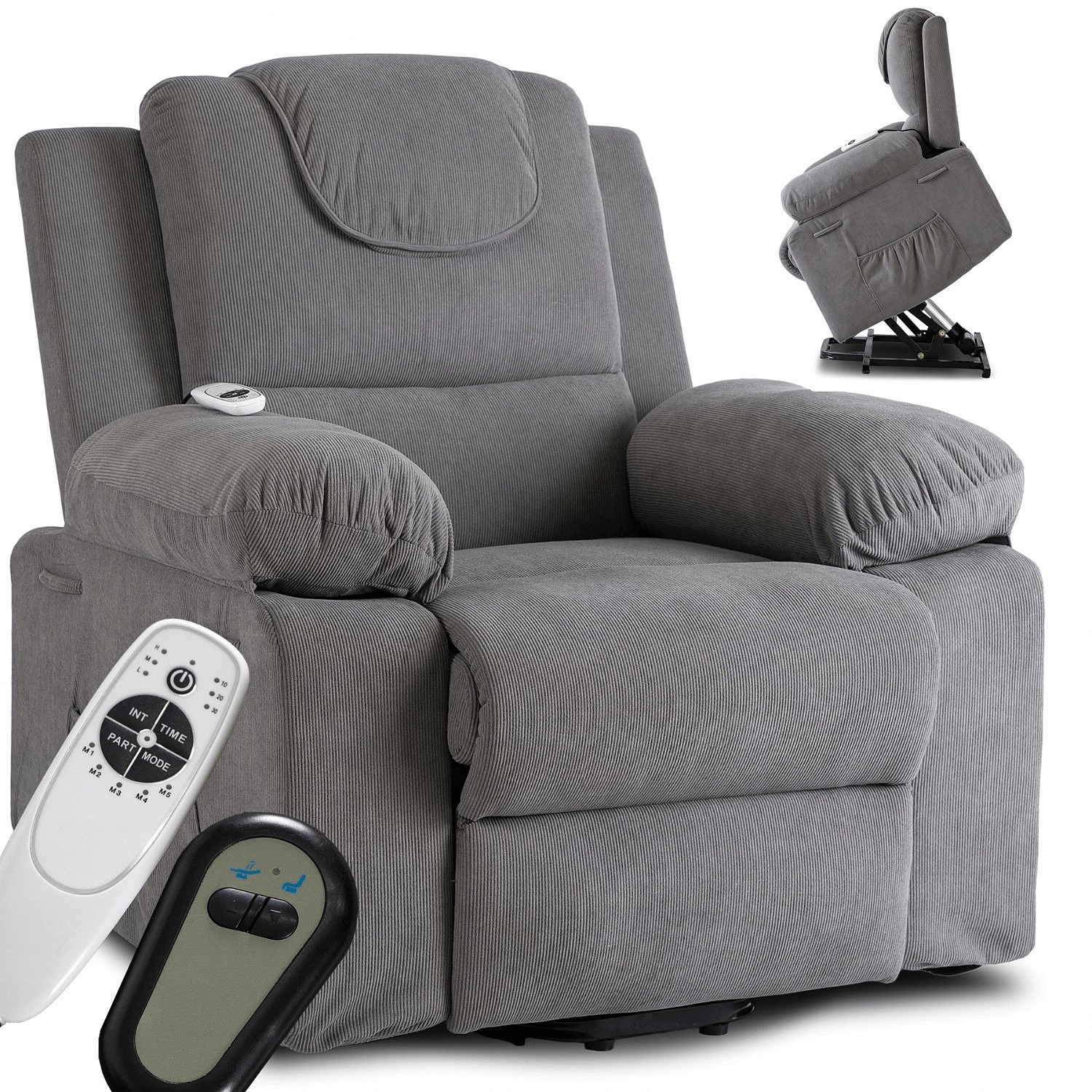 Elektricky polohovatelné masážní křeslo FENIX s funkcí vstávání Šedé