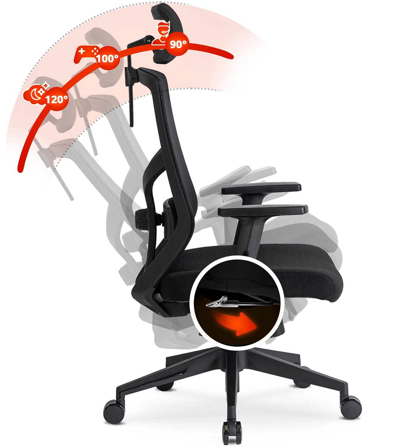 Ergonomická otočná židle BENTO Černá