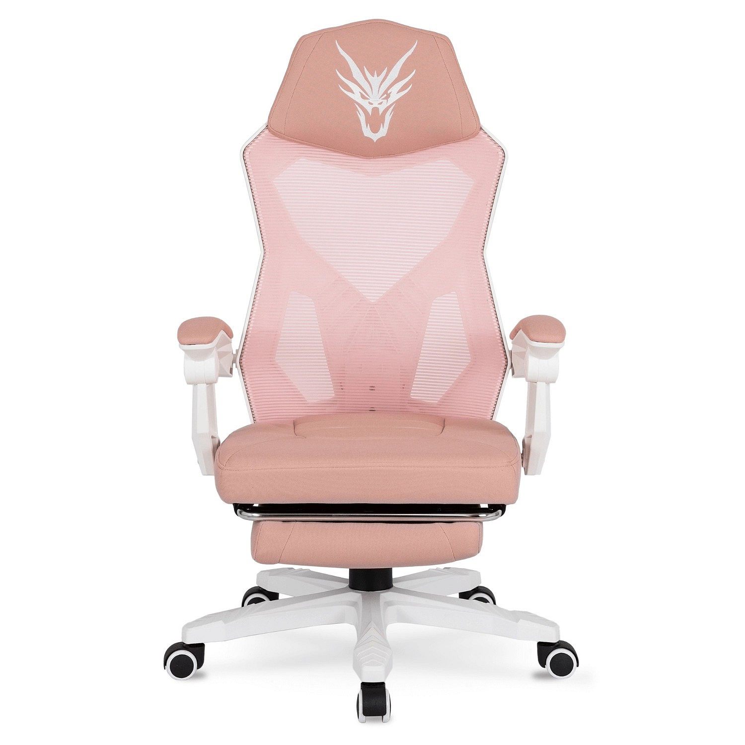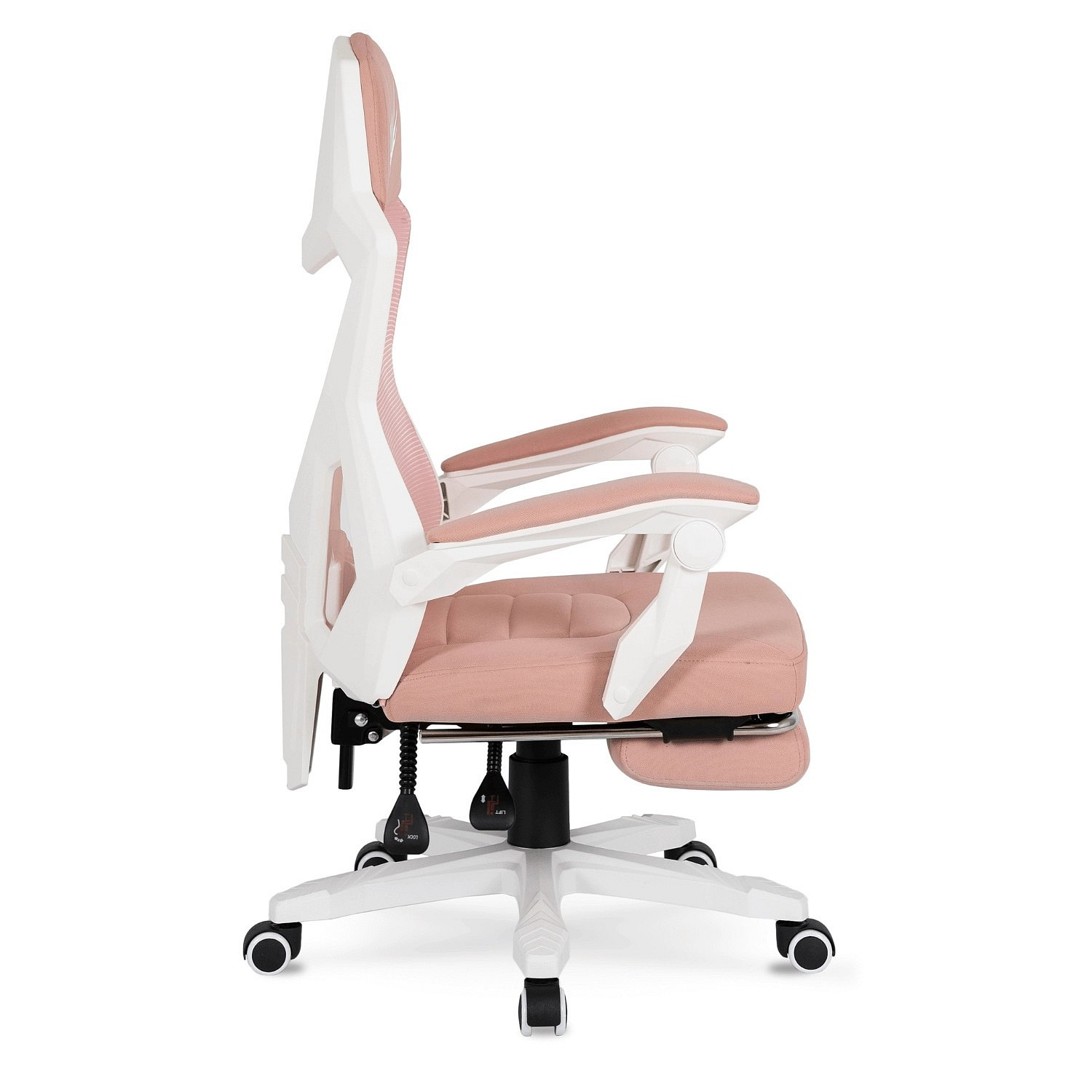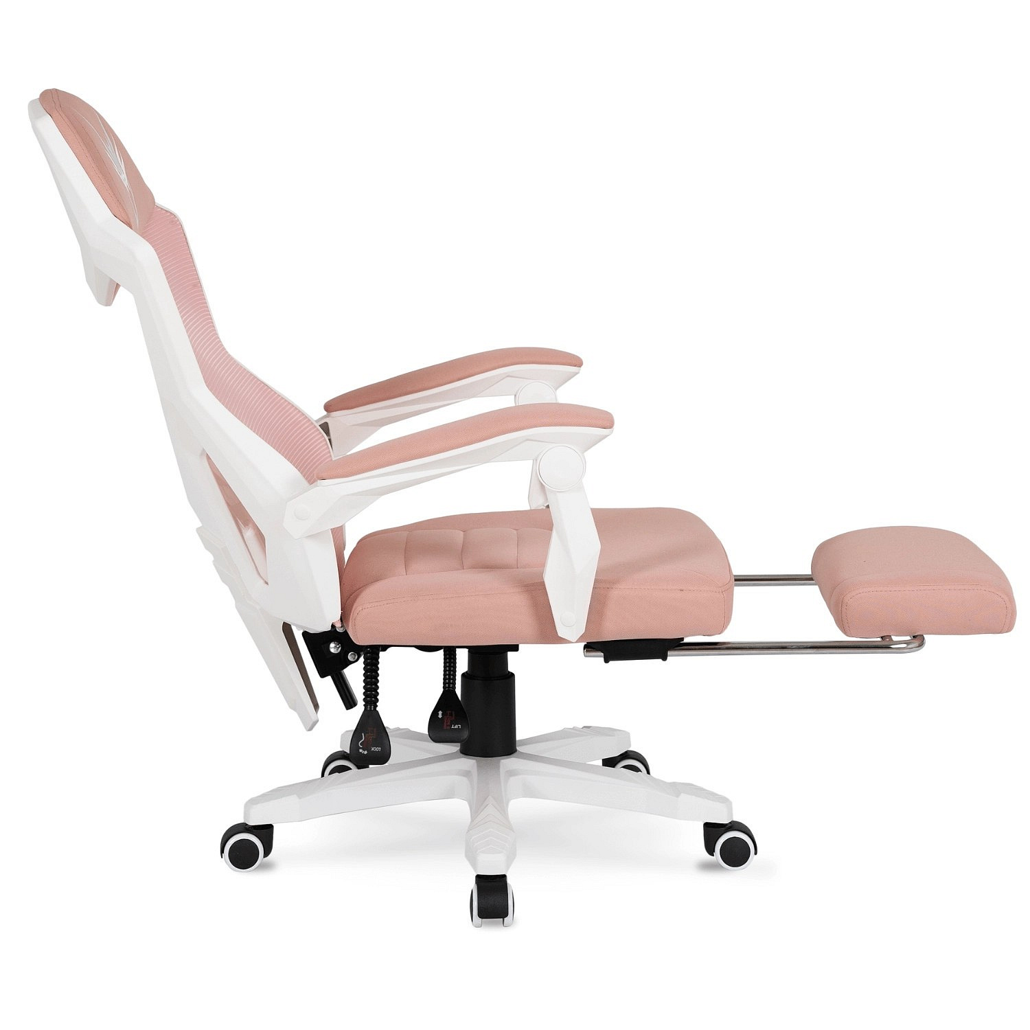 Otočná židle BING Herní s podnožkou Růžová/Bílá