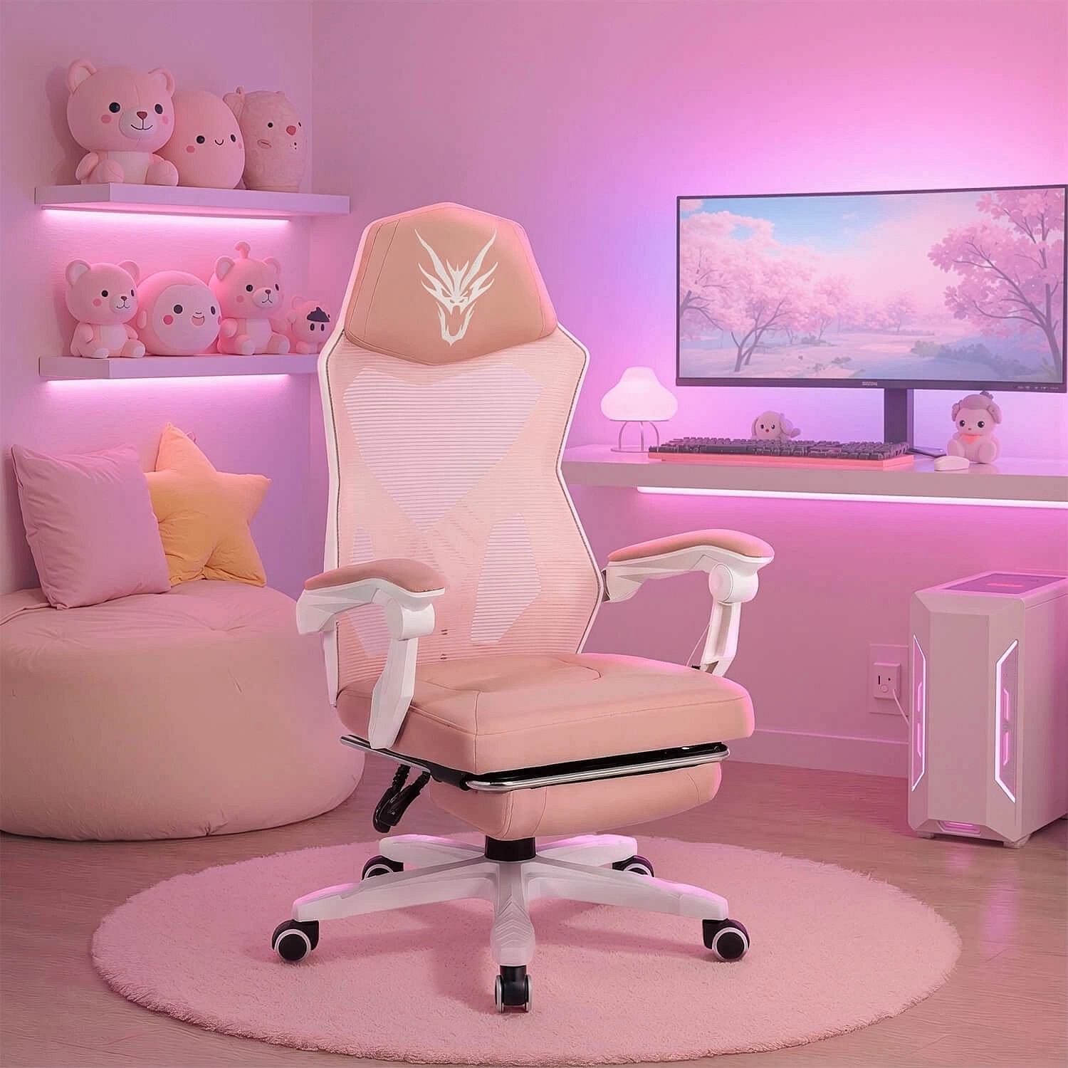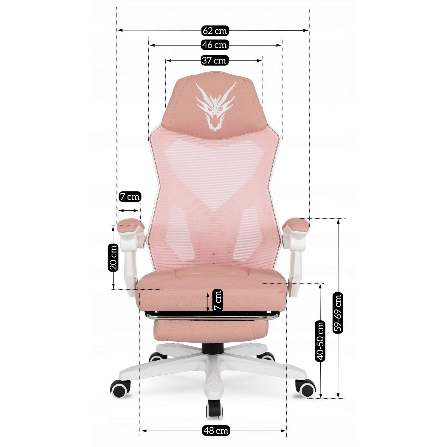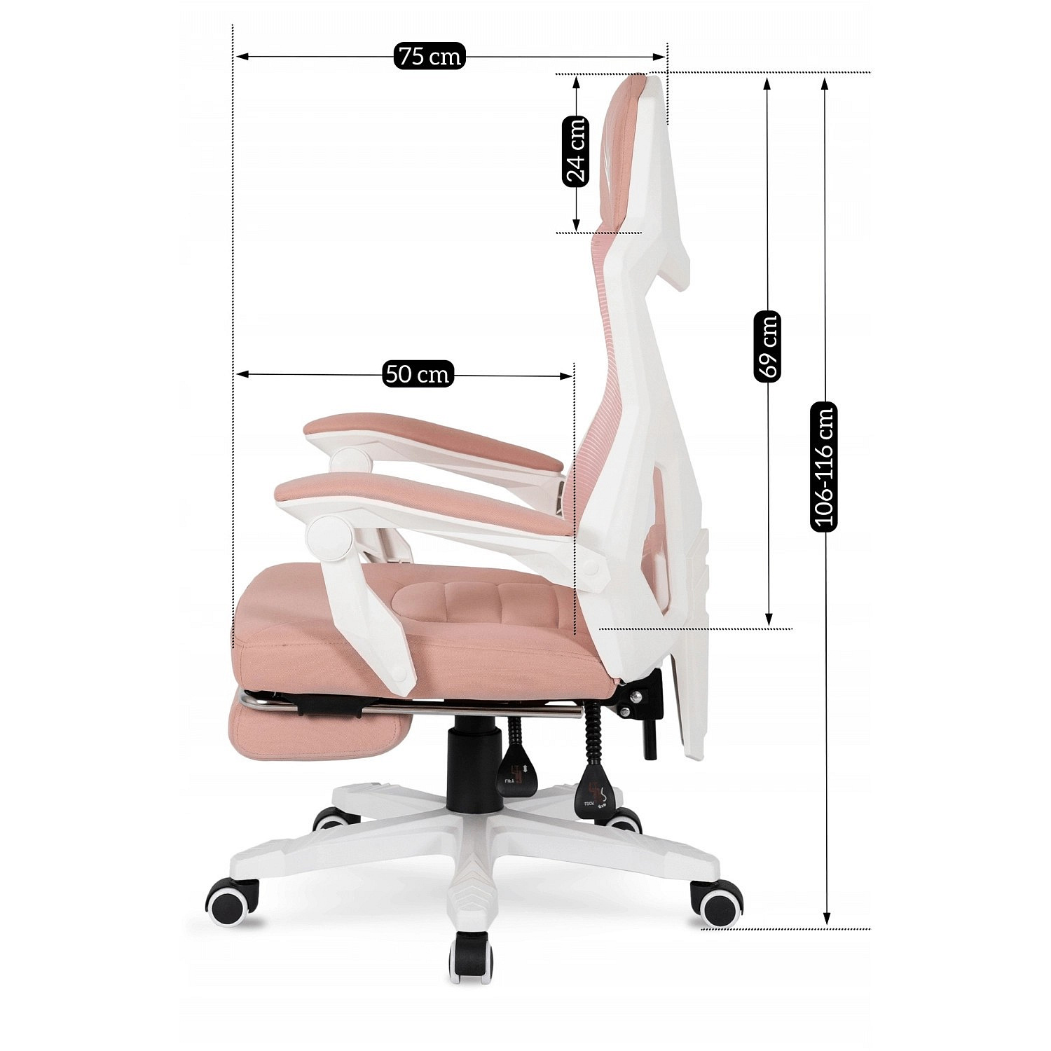 Otočná židle BING Herní s podnožkou Růžová/Bílá