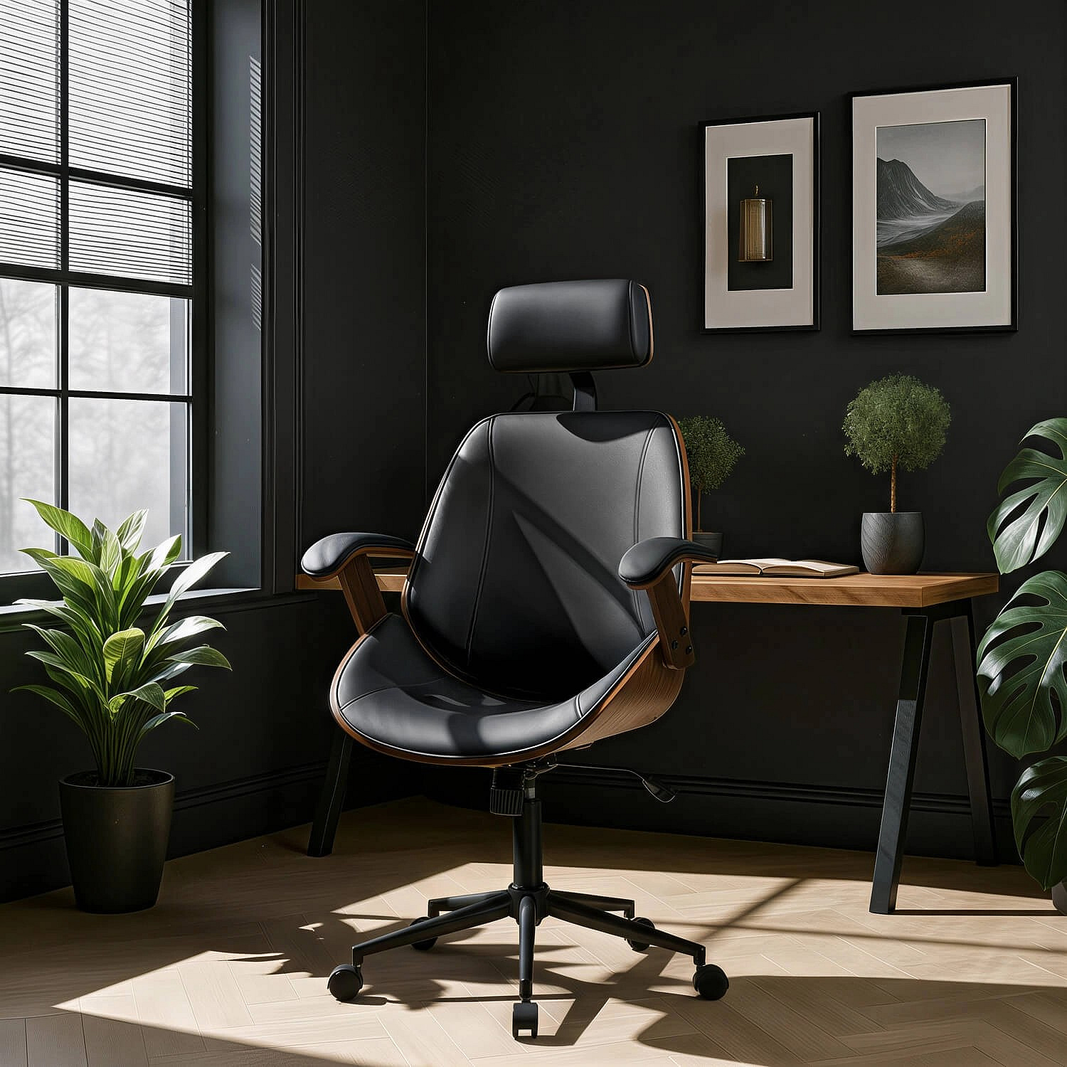 Otočná židle FABIAN Ořech/Černá Ekokůže