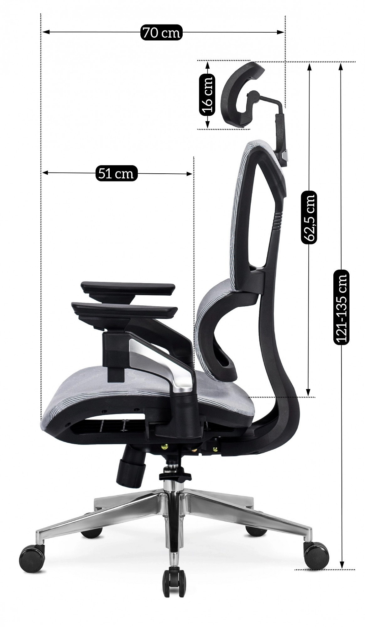 | Wysokość fotela | 135 cm |