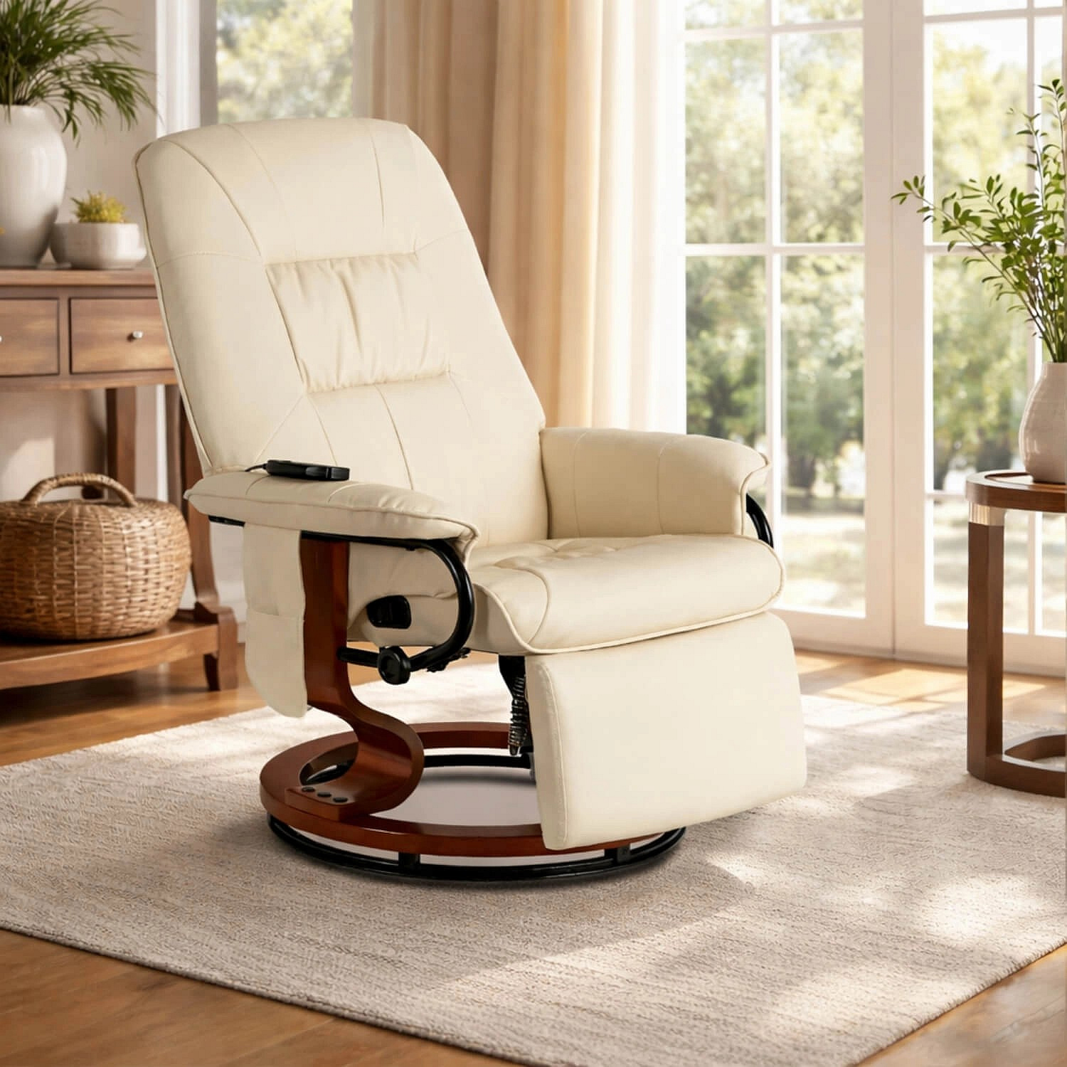 Otočná Masážní Židle WEST Vyhřívaná Béžová Ekokůže