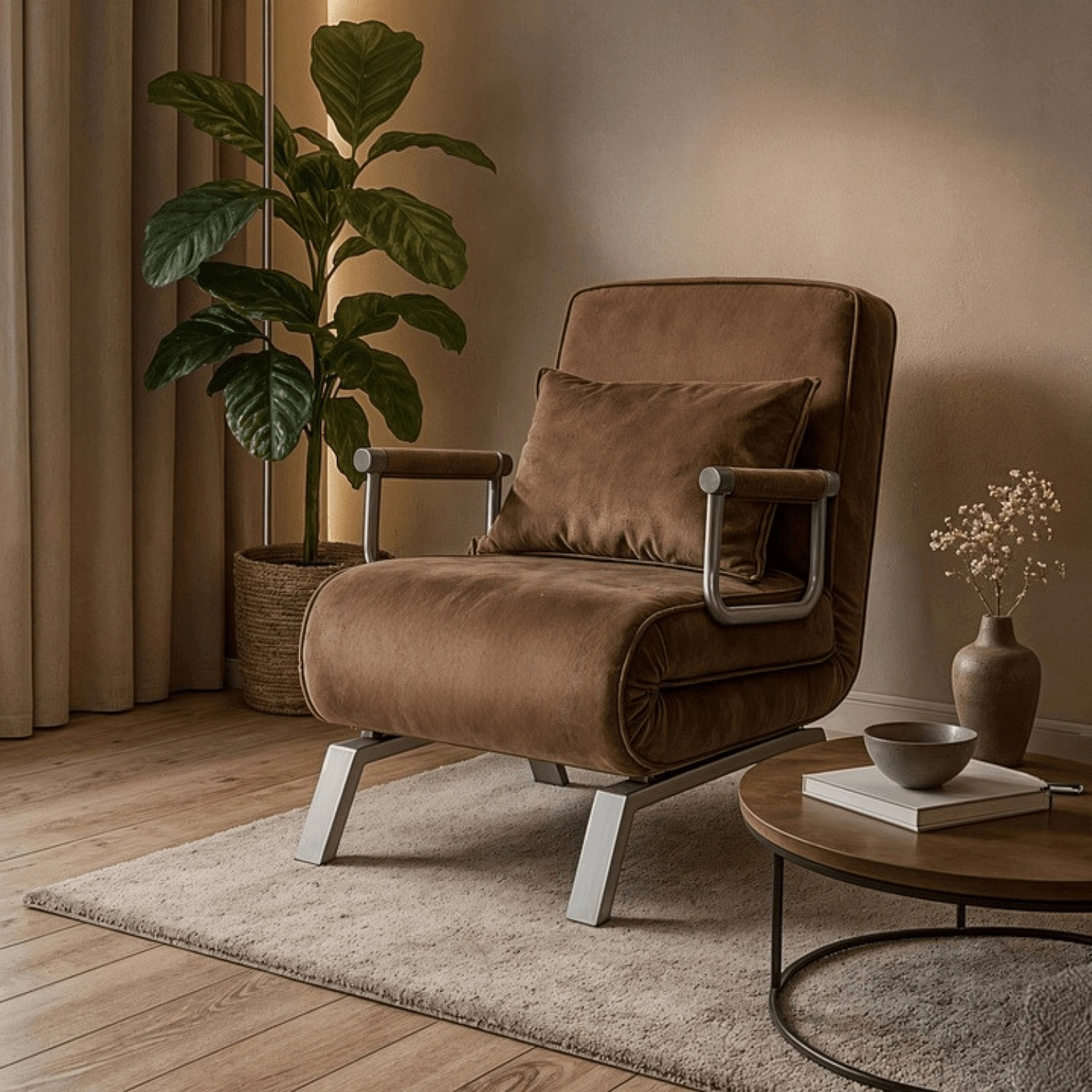 Rozkládací Křeslo BART Hnědé Sametové