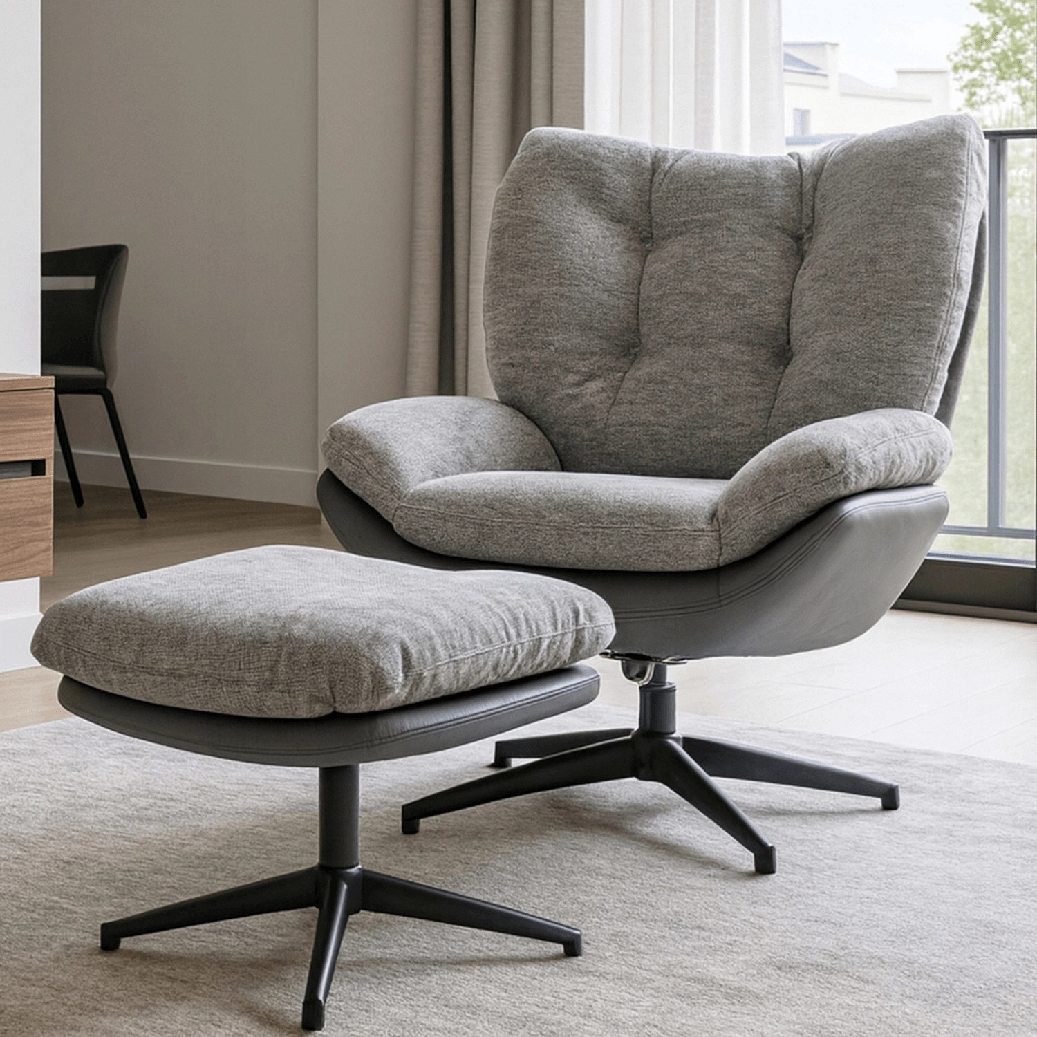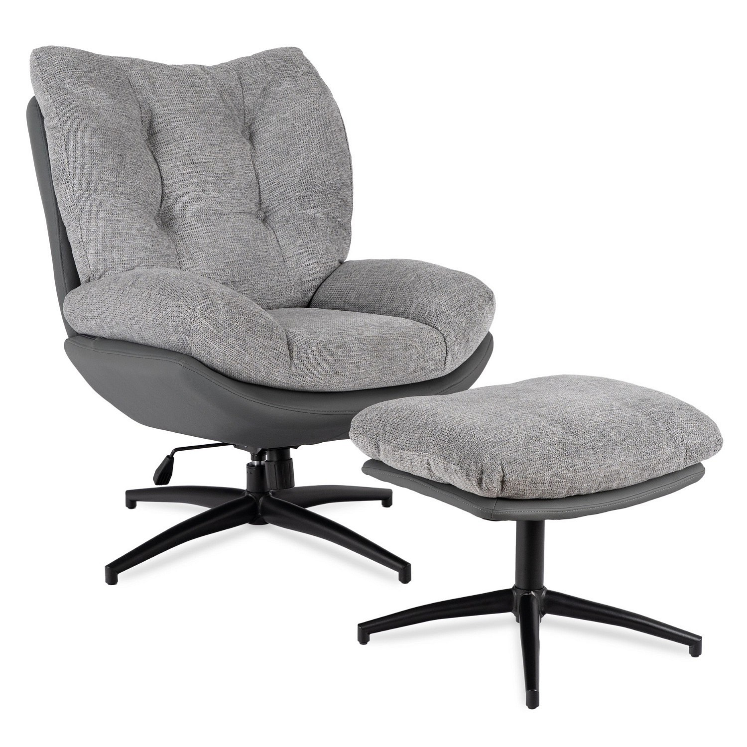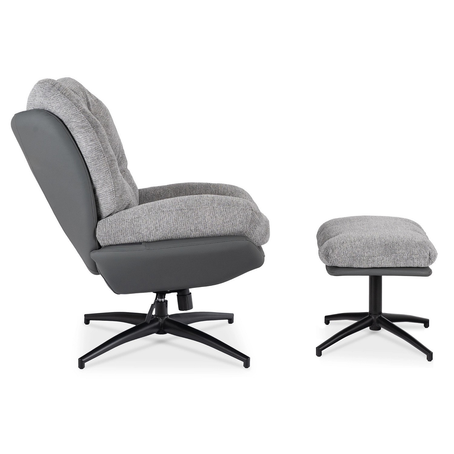 Otočná Relaxační Křeslo FREMONT s Podnožkou Šedá/Černá