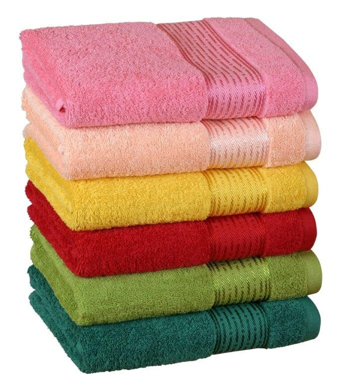 Froté ručníky a osušky s proužkem jsou vyrobeny z bavlněného materiálu a díky jemným přízím jsou velmi příjemné na omak. Charakteristická je i vysoká savost froté materiálu. Každou z barev můžete zkompletovat do barvy ručníku i osušky. Plošná gramáž použitého froté materiálu je 450g/m2.