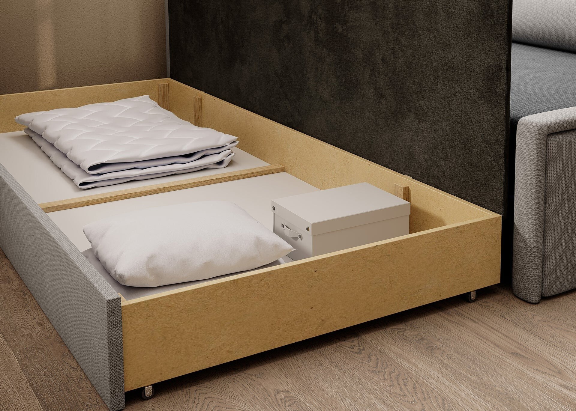 Jednou z hlavních předností této pohovky je její multifunkčnost. Díky možnosti rozkládání se snadno promění v pohodlné lůžko s plochou na spaní 150 x 200 cm, což je ideální pro hosty nebo pro ty, kteří si rádi dopřejí odpolední odpočinek. Navíc je vybavena praktickým úložným prostorem, který vám umožní snadno uschovat deky, polštáře nebo jiné předměty, které chcete mít po ruce, ale zároveň je mít úhledně uklizené.