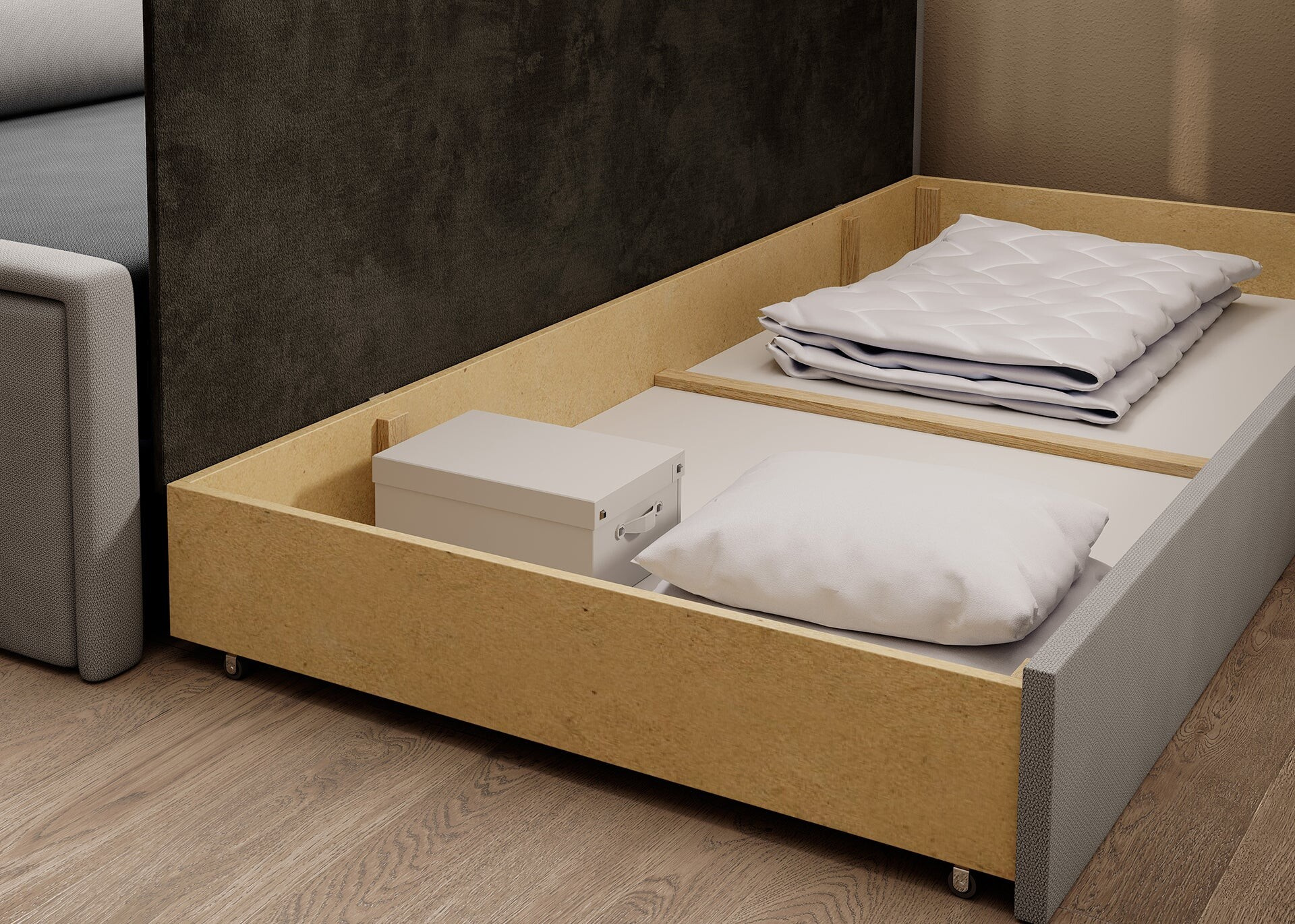 Jednou z hlavních předností této pohovky je její multifunkčnost. Díky možnosti rozkládání se snadno promění v pohodlné lůžko s plochou na spaní 150 x 200 cm, což je ideální pro hosty nebo pro ty, kteří si rádi dopřejí odpolední odpočinek. Navíc je vybavena praktickým úložným prostorem, který vám umožní snadno uschovat deky, polštáře nebo jiné předměty, které chcete mít po ruce, ale zároveň je mít úhledně uklizené.
