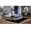 Světle šedá barva postele GABRIELLA je univerzální a snadno se kombinuje s různými styly interiéru. Výška zadního čela postele je 120 cm, což dodává posteli majestátní vzhled, zatímco přední čelo s výškou 93 cm zajišťuje harmonický a vyvážený design.