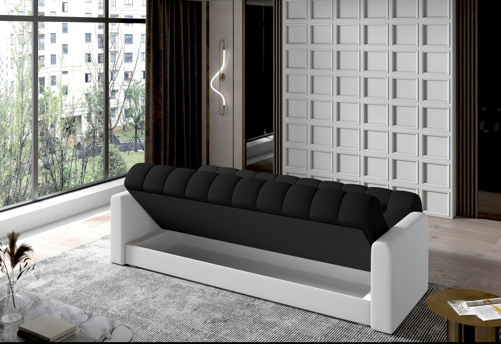 Garett je elegantní a velmi stylová pohovka, která zaujme svým zpracováním. Klasický tvar s elegantním provedením dodává pohovce jedinečný charakter. Garett je kus nábytku s rozměry 210 x 85 x 90 cm - pro odpočinek během dne i noci - díky spací funkci - postel o rozměrech 115 x 190 cm s navíc prostorným úložným prostorem na ložní prádlo, který je podporován otevíracím mechanismem Klik-klak. Díky použití bonelu a pěny T25 je sedák pohovky mimořádně flexibilní, měkký a odolný vůči jakémukoli druhu deformace. Jednoduchý tvar, elegantní provedení a bezpečná konstrukce - to je to, co představuje lounge nábytek Garett. Taková pohovka jistě splní všechna vaše očekávání.