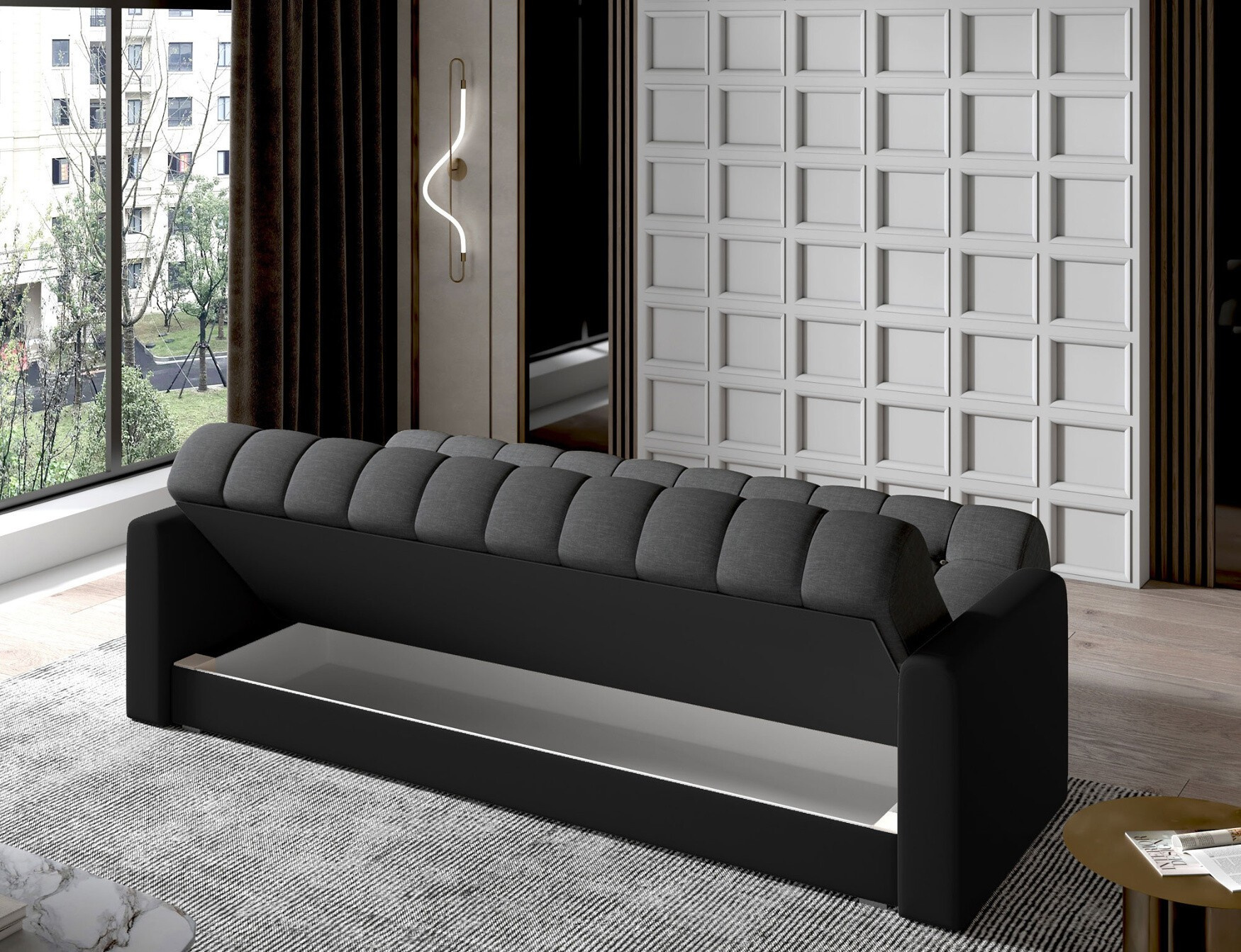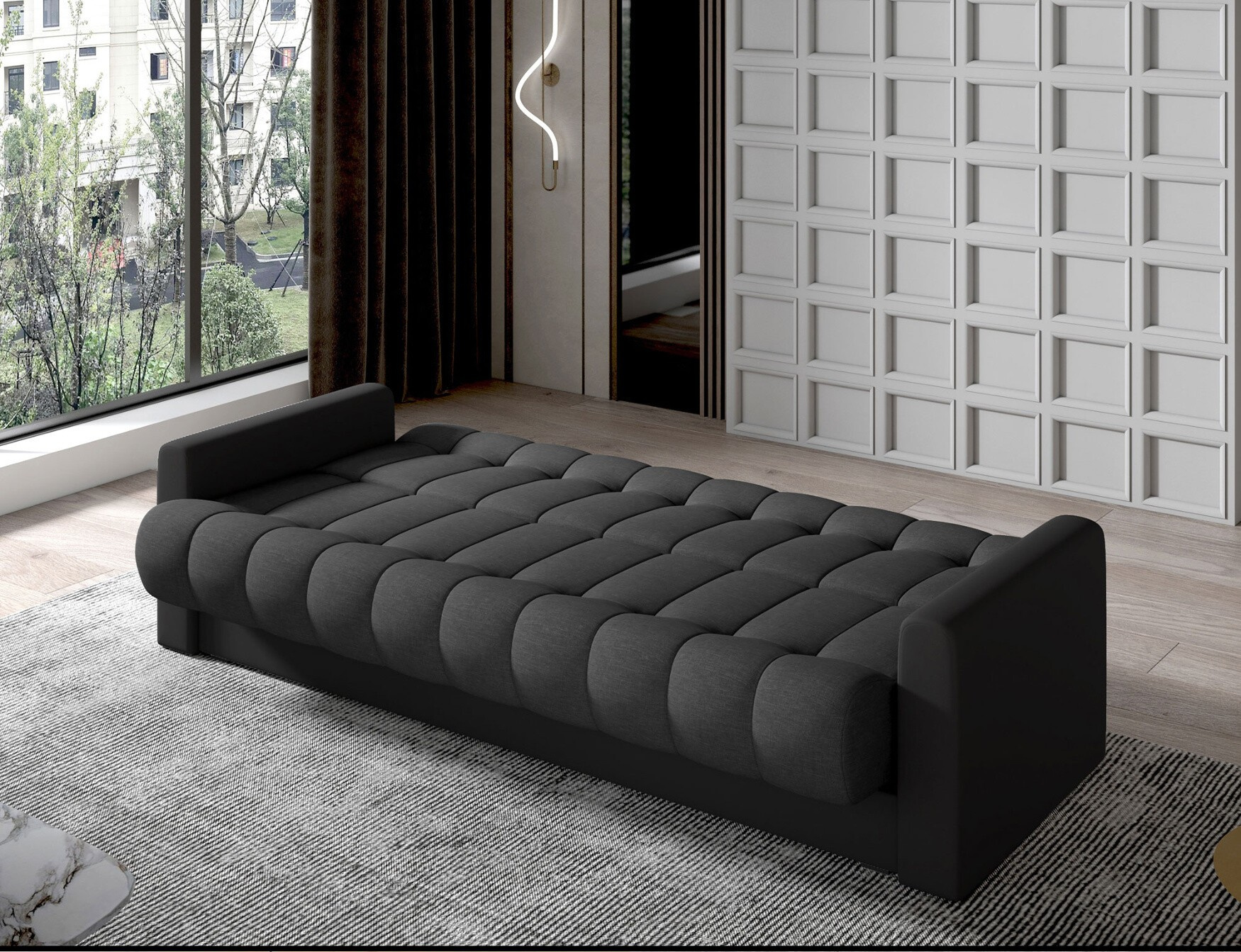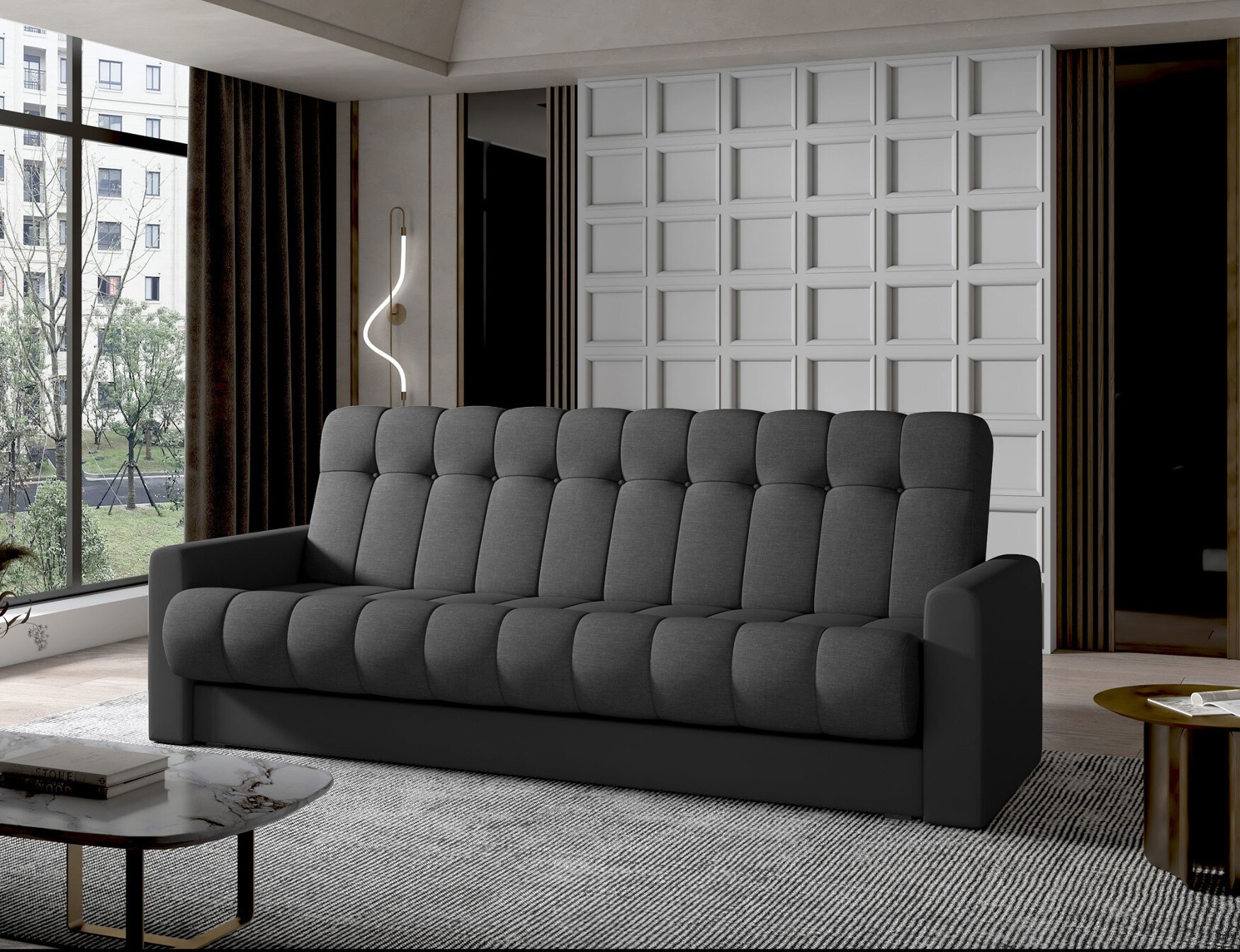 Garett je elegantní a velmi stylová pohovka, která zaujme svým zpracováním. Klasický tvar s elegantním provedením dodává pohovce jedinečný charakter. Garett je kus nábytku s rozměry 210 x 85 x 90 cm - pro odpočinek během dne i noci - díky spací funkci - postel o rozměrech 115 x 190 cm s navíc prostorným úložným prostorem na ložní prádlo, který je podporován otevíracím mechanismem Klik-klak. Díky použití bonelu a pěny T25 je sedák pohovky mimořádně flexibilní, měkký a odolný vůči jakémukoli druhu deformace. Jednoduchý tvar, elegantní provedení a bezpečná konstrukce - to je to, co představuje lounge nábytek Garett. Taková pohovka jistě splní všechna vaše očekávání.