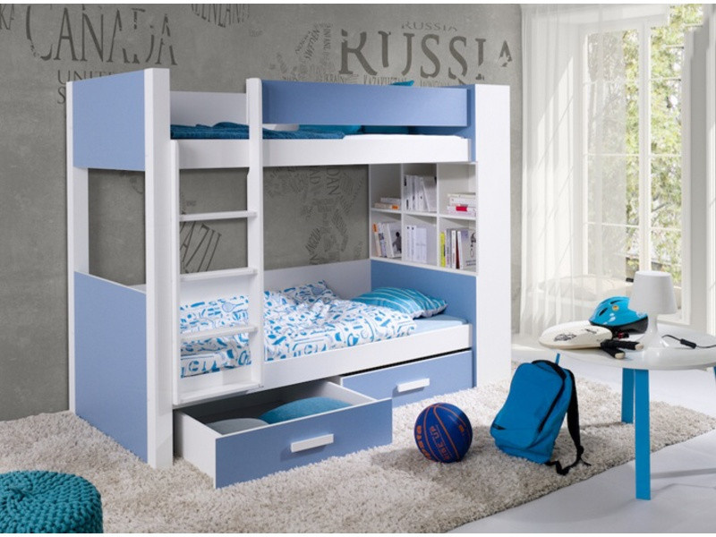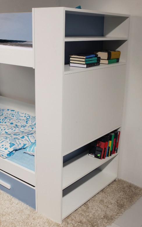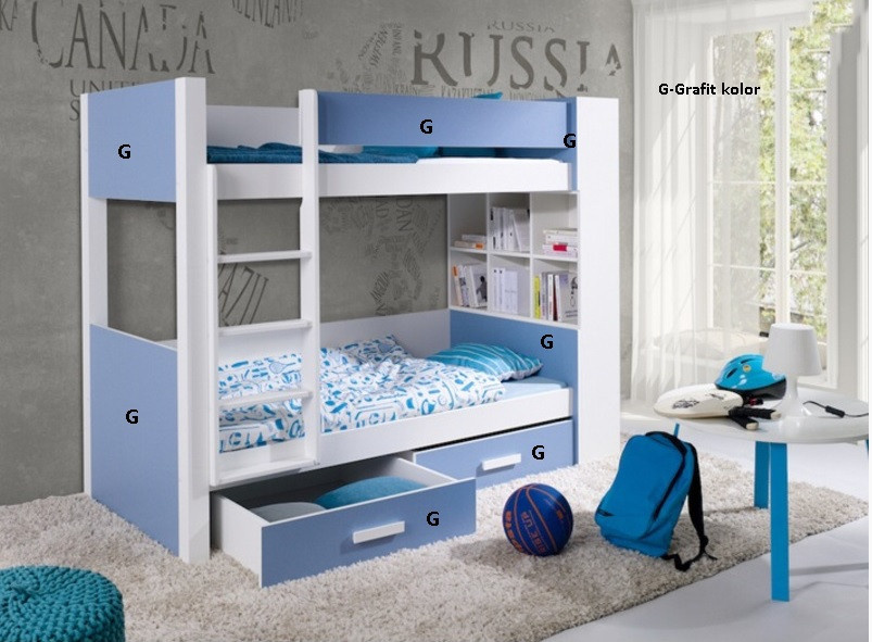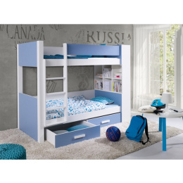 GASPAR je dětská patrová postel , součástí jsou také 2 úložné šuplíky. Maximální nosnost horní postele je 80 kg, spodní postele pak 120 kg.