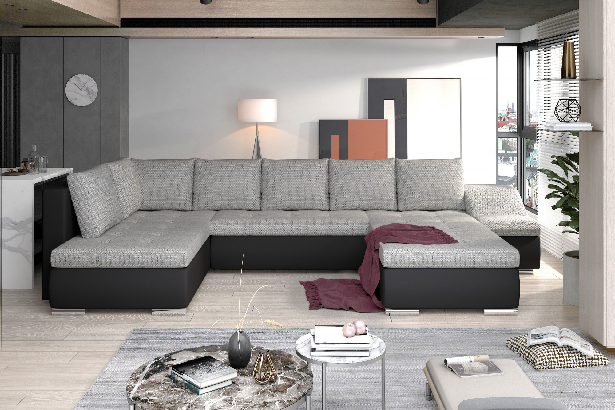 Giovanni je mimořádně elegantní, prostorná a inovativní rohová pohovka ve tvaru U s rozměry 340 x 200 x 88 cm. Tento nábytek má pohodlné, měkké sedadlo vyrobené z odolné vlnité pružiny a také z pružné pěny T30, která je odolná nejen proti poškození, ale také proti deformacím a škrábancům všech typů. Moderní design v klasickém stylu byl vybaven dalším bočním prvkem, který slouží jako prostorná opěrka rukou, a zároveň může být dalším sedadlem. Naše rohová sedačka je vybavena funkcí spaní o rozměrech 295 x 120 cm a také úložným prostorem na lůžkoviny. Mezi vlastnosti rohové pohovky Giovanni můžeme zahrnout: zaoblené hrany rohové pohovky, které jí dodávají eleganci, stříbrné kovové nohy, širokou opěrku rukou, vlnité, padající dolů, stylové prošívání na sedácích, stejně jako prostorné polštáře. Výběrem naší atraktivní rohové pohovky, která je nejen vizuálně, ale i funkčně přitažlivá, si můžete být jisti, že najdete vše, co potřebujete k dosažení maximální spokojenosti vyplývající z pohodlí, které nabízíme.