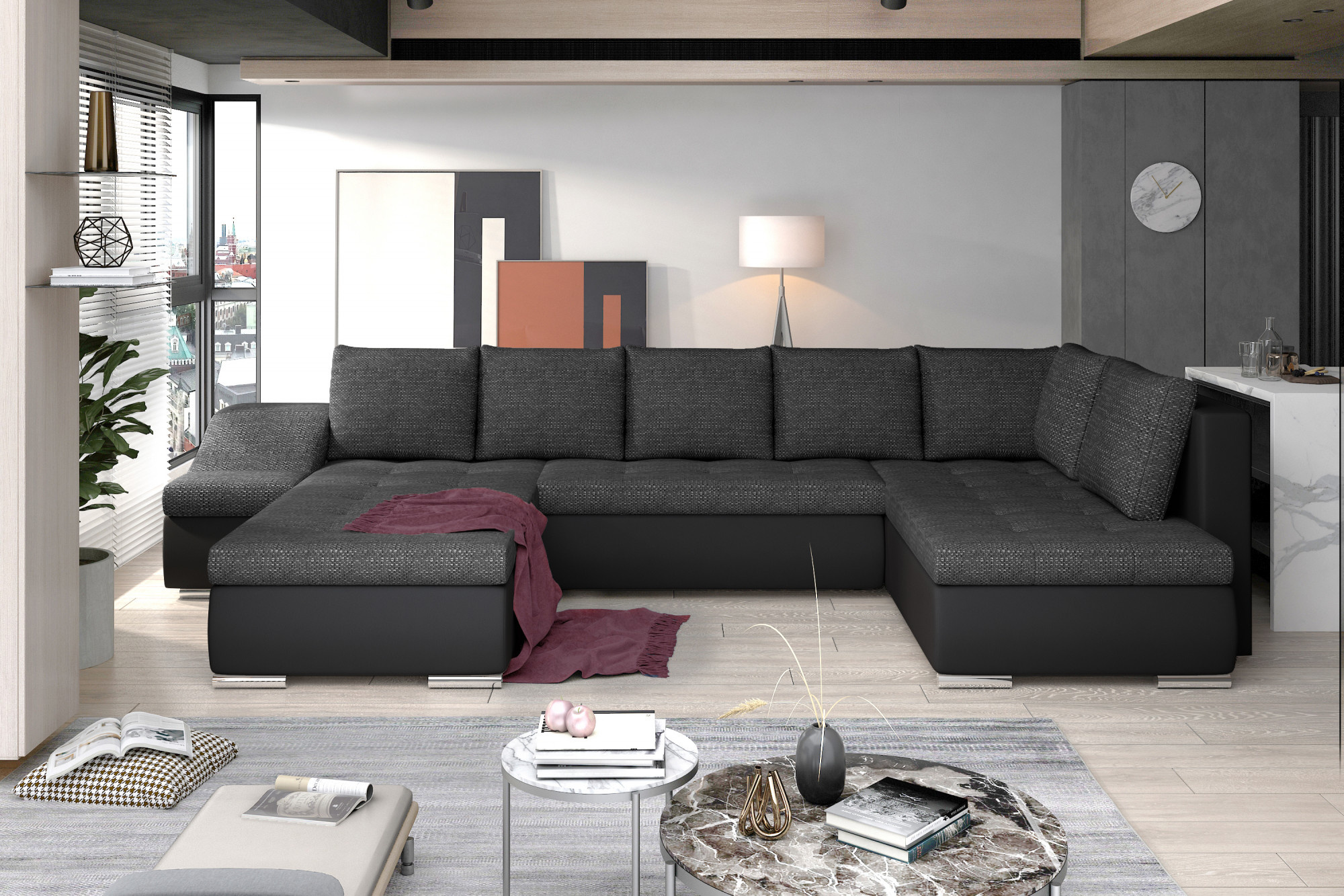Giovanni je mimořádně elegantní, prostorná a inovativní rohová pohovka ve tvaru U s rozměry 340 x 200 x 88 cm. Tento nábytek má pohodlné, měkké sedadlo vyrobené z odolné vlnité pružiny a také z pružné pěny T30, která je odolná nejen proti poškození, ale také proti deformacím a škrábancům všech typů. Moderní design v klasickém stylu byl vybaven dalším bočním prvkem, který slouží jako prostorná opěrka rukou, a zároveň může být dalším sedadlem. Naše rohová sedačka je vybavena funkcí spaní o rozměrech 295 x 120 cm a také úložným prostorem na lůžkoviny. Mezi vlastnosti rohové pohovky Giovanni můžeme zahrnout: zaoblené hrany rohové pohovky, které jí dodávají eleganci, stříbrné kovové nohy, širokou opěrku rukou, vlnité, padající dolů, stylové prošívání na sedácích, stejně jako prostorné polštáře. Výběrem naší atraktivní rohové pohovky, která je nejen vizuálně, ale i funkčně přitažlivá, si můžete být jisti, že najdete vše, co potřebujete k dosažení maximální spokojenosti vyplývající z pohodlí, které nabízíme.
