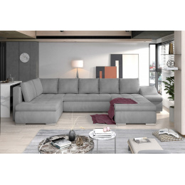 Giovanni je mimořádně elegantní, prostorná a inovativní rohová pohovka ve tvaru U s rozměry 340 x 200 x 88 cm. Tento nábytek má pohodlné, měkké sedadlo vyrobené z odolné vlnité pružiny a také z pružné pěny T30, která je odolná nejen proti poškození, ale také proti deformacím a škrábancům všech typů. Moderní design v klasickém stylu byl vybaven dalším bočním prvkem, který slouží jako prostorná opěrka rukou, a zároveň může být dalším sedadlem. Naše rohová sedačka je vybavena funkcí spaní o rozměrech 295 x 120 cm a také úložným prostorem na lůžkoviny. Mezi vlastnosti rohové pohovky Giovanni můžeme zahrnout: zaoblené hrany rohové pohovky, které jí dodávají eleganci, stříbrné kovové nohy, širokou opěrku rukou, vlnité, padající dolů, stylové prošívání na sedácích, stejně jako prostorné polštáře. Výběrem naší atraktivní rohové pohovky, která je nejen vizuálně, ale i funkčně přitažlivá, si můžete být jisti, že najdete vše, co potřebujete k dosažení maximální spokojenosti vyplývající z pohodlí, které nabízíme.