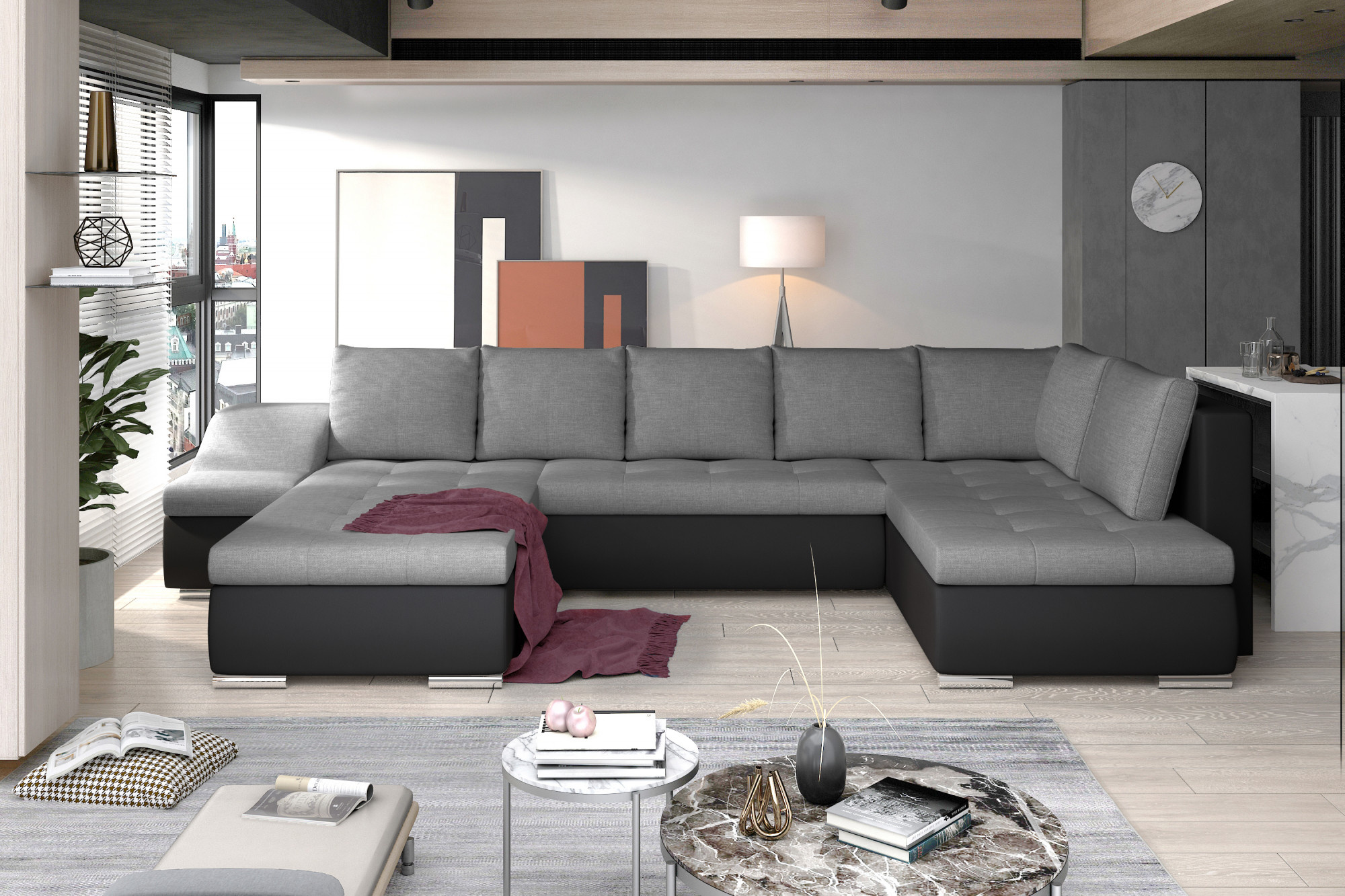 Giovanni je mimořádně elegantní, prostorná a inovativní rohová pohovka ve tvaru U s rozměry 340 x 200 x 88 cm. Tento nábytek má pohodlné, měkké sedadlo vyrobené z odolné vlnité pružiny a také z pružné pěny T30, která je odolná nejen proti poškození, ale také proti deformacím a škrábancům všech typů. Moderní design v klasickém stylu byl vybaven dalším bočním prvkem, který slouží jako prostorná opěrka rukou, a zároveň může být dalším sedadlem. Naše rohová sedačka je vybavena funkcí spaní o rozměrech 295 x 120 cm a také úložným prostorem na lůžkoviny. Mezi vlastnosti rohové pohovky Giovanni můžeme zahrnout: zaoblené hrany rohové pohovky, které jí dodávají eleganci, stříbrné kovové nohy, širokou opěrku rukou, vlnité, padající dolů, stylové prošívání na sedácích, stejně jako prostorné polštáře. Výběrem naší atraktivní rohové pohovky, která je nejen vizuálně, ale i funkčně přitažlivá, si můžete být jisti, že najdete vše, co potřebujete k dosažení maximální spokojenosti vyplývající z pohodlí, které nabízíme.