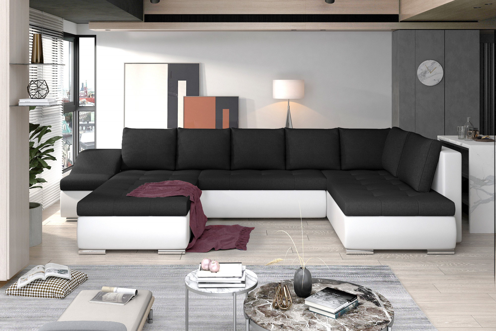 Giovanni je mimořádně elegantní, prostorná a inovativní rohová pohovka ve tvaru U s rozměry 340 x 200 x 88 cm. Tento nábytek má pohodlné, měkké sedadlo vyrobené z odolné vlnité pružiny a také z pružné pěny T30, která je odolná nejen proti poškození, ale také proti deformacím a škrábancům všech typů. Moderní design v klasickém stylu byl vybaven dalším bočním prvkem, který slouží jako prostorná opěrka rukou, a zároveň může být dalším sedadlem. Naše rohová sedačka je vybavena funkcí spaní o rozměrech 295 x 120 cm a také úložným prostorem na lůžkoviny. Mezi vlastnosti rohové pohovky Giovanni můžeme zahrnout: zaoblené hrany rohové pohovky, které jí dodávají eleganci, stříbrné kovové nohy, širokou opěrku rukou, vlnité, padající dolů, stylové prošívání na sedácích, stejně jako prostorné polštáře. Výběrem naší atraktivní rohové pohovky, která je nejen vizuálně, ale i funkčně přitažlivá, si můžete být jisti, že najdete vše, co potřebujete k dosažení maximální spokojenosti vyplývající z pohodlí, které nabízíme.