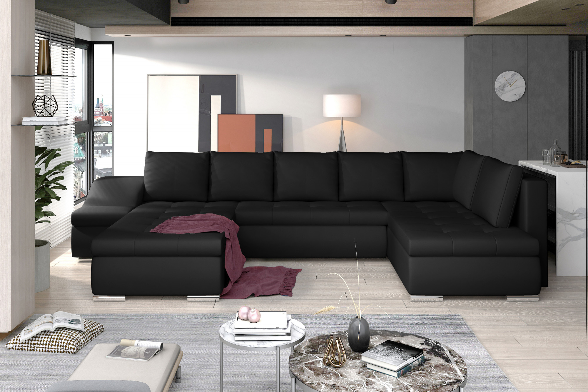 Giovanni je mimořádně elegantní, prostorná a inovativní rohová pohovka ve tvaru U s rozměry 340 x 200 x 88 cm. Tento nábytek má pohodlné, měkké sedadlo vyrobené z odolné vlnité pružiny a také z pružné pěny T30, která je odolná nejen proti poškození, ale také proti deformacím a škrábancům všech typů. Moderní design v klasickém stylu byl vybaven dalším bočním prvkem, který slouží jako prostorná opěrka rukou, a zároveň může být dalším sedadlem. Naše rohová sedačka je vybavena funkcí spaní o rozměrech 295 x 120 cm a také úložným prostorem na lůžkoviny. Mezi vlastnosti rohové pohovky Giovanni můžeme zahrnout: zaoblené hrany rohové pohovky, které jí dodávají eleganci, stříbrné kovové nohy, širokou opěrku rukou, vlnité, padající dolů, stylové prošívání na sedácích, stejně jako prostorné polštáře. Výběrem naší atraktivní rohové pohovky, která je nejen vizuálně, ale i funkčně přitažlivá, si můžete být jisti, že najdete vše, co potřebujete k dosažení maximální spokojenosti vyplývající z pohodlí, které nabízíme.