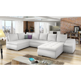 Giovanni je mimořádně elegantní, prostorná a inovativní rohová pohovka ve tvaru U s rozměry 340 x 200 x 88 cm. Tento nábytek má pohodlné, měkké sedadlo vyrobené z odolné vlnité pružiny a také z pružné pěny T30, která je odolná nejen proti poškození, ale také proti deformacím a škrábancům všech typů. Moderní design v klasickém stylu byl vybaven dalším bočním prvkem, který slouží jako prostorná opěrka rukou, a zároveň může být dalším sedadlem. Naše rohová sedačka je vybavena funkcí spaní o rozměrech 295 x 120 cm a také úložným prostorem na lůžkoviny. Mezi vlastnosti rohové pohovky Giovanni můžeme zahrnout: zaoblené hrany rohové pohovky, které jí dodávají eleganci, stříbrné kovové nohy, širokou opěrku rukou, vlnité, padající dolů, stylové prošívání na sedácích, stejně jako prostorné polštáře. Výběrem naší atraktivní rohové pohovky, která je nejen vizuálně, ale i funkčně přitažlivá, si můžete být jisti, že najdete vše, co potřebujete k dosažení maximální spokojenosti vyplývající z pohodlí, které nabízíme.