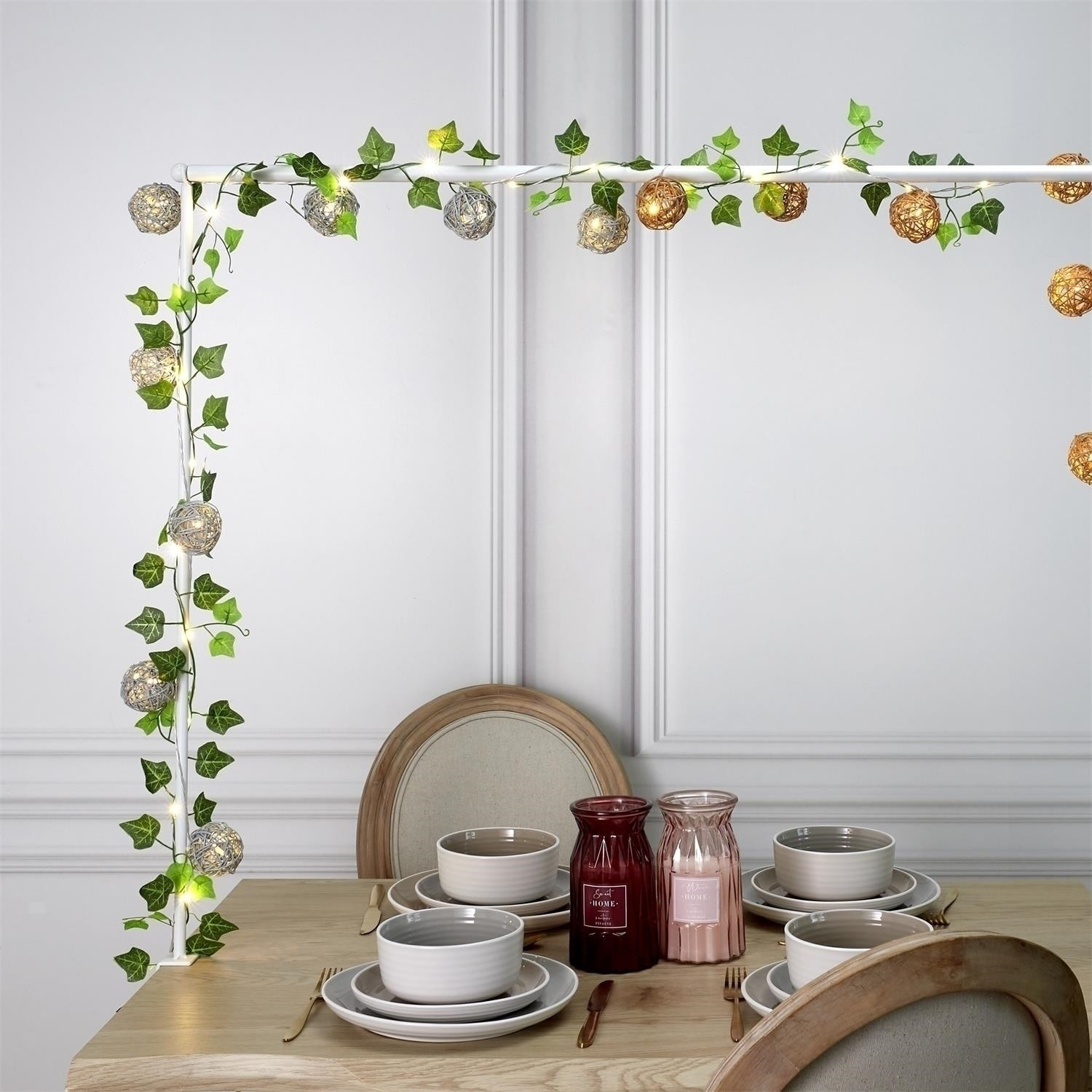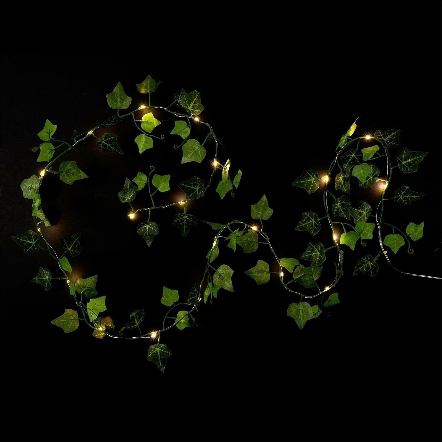 Girlanda listů s LED světýlky ozdobí pokoj teenagera, stůl v zimní zahradě nebo terasu v horký večer. Girlanda LED může být také ozdobou stolu. Napájená na baterie (není součástí balení) může svítit téměř na každém místě bez potřeby přístupu k elektrické zásuvce nebo zbytečných prodlužovacích kabelů. Délka girlandy 200 cm. Materiál: plast. Světlo teplé barvy.