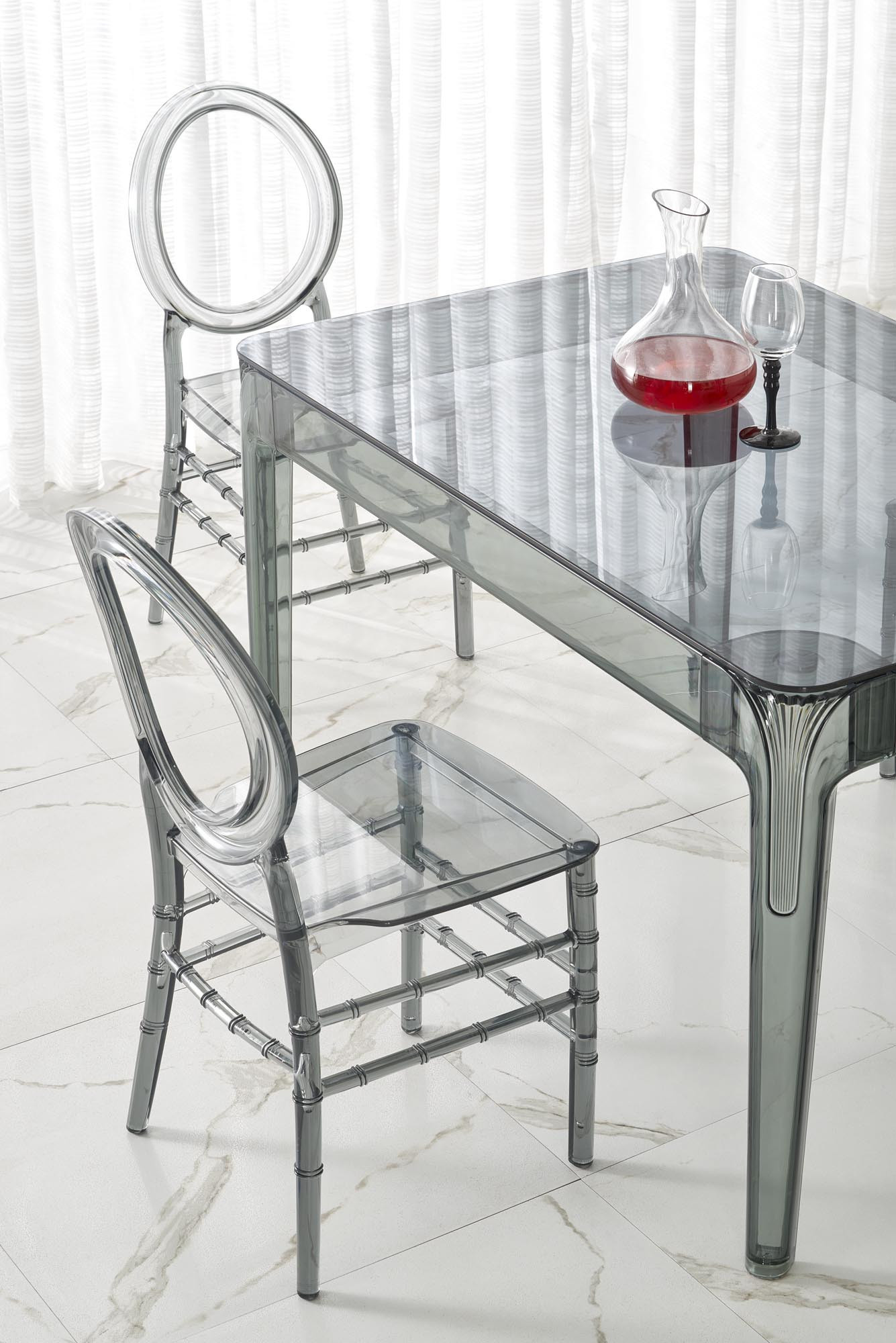 Jídelní stůl GOMEZ je vyroben z kvalitního skla, které dodává celému kusu nábytku lehkost a vzdušnost. Kouřová barva skla přináší do vašeho interiéru sofistikovaný a moderní vzhled, který se snadno kombinuje s různými styly nábytku a dekorací. Skleněný povrch je nejen esteticky přitažlivý, ale také snadno udržovatelný, což oceníte při každodenním používání.