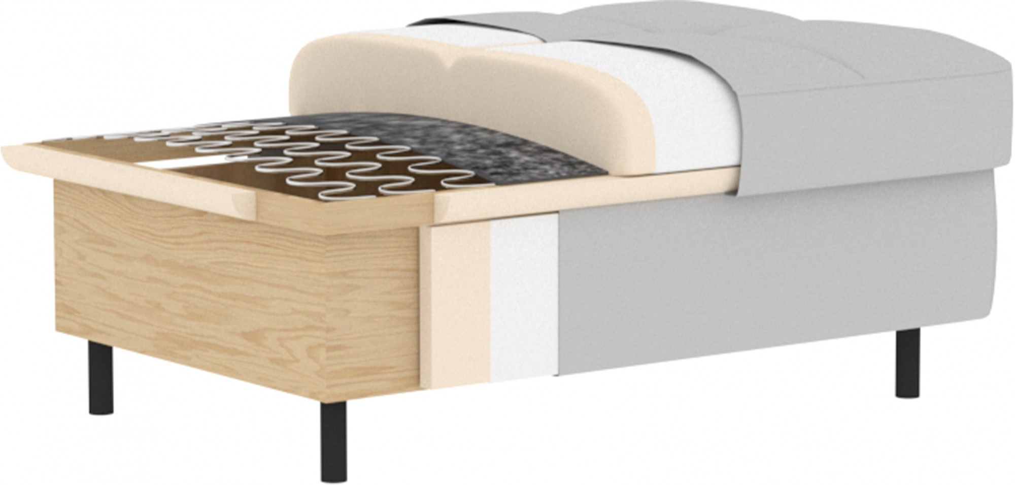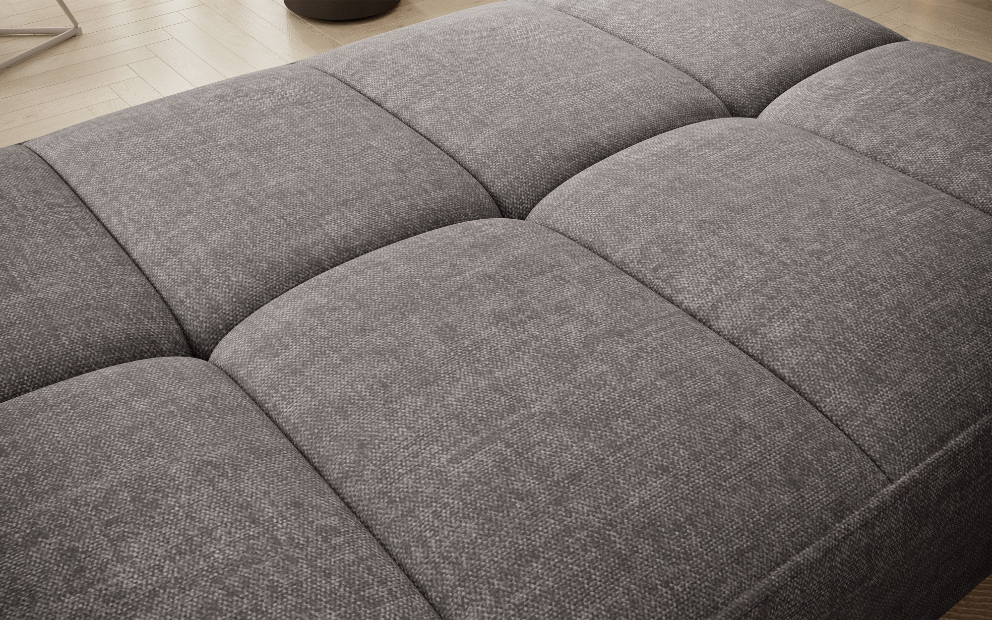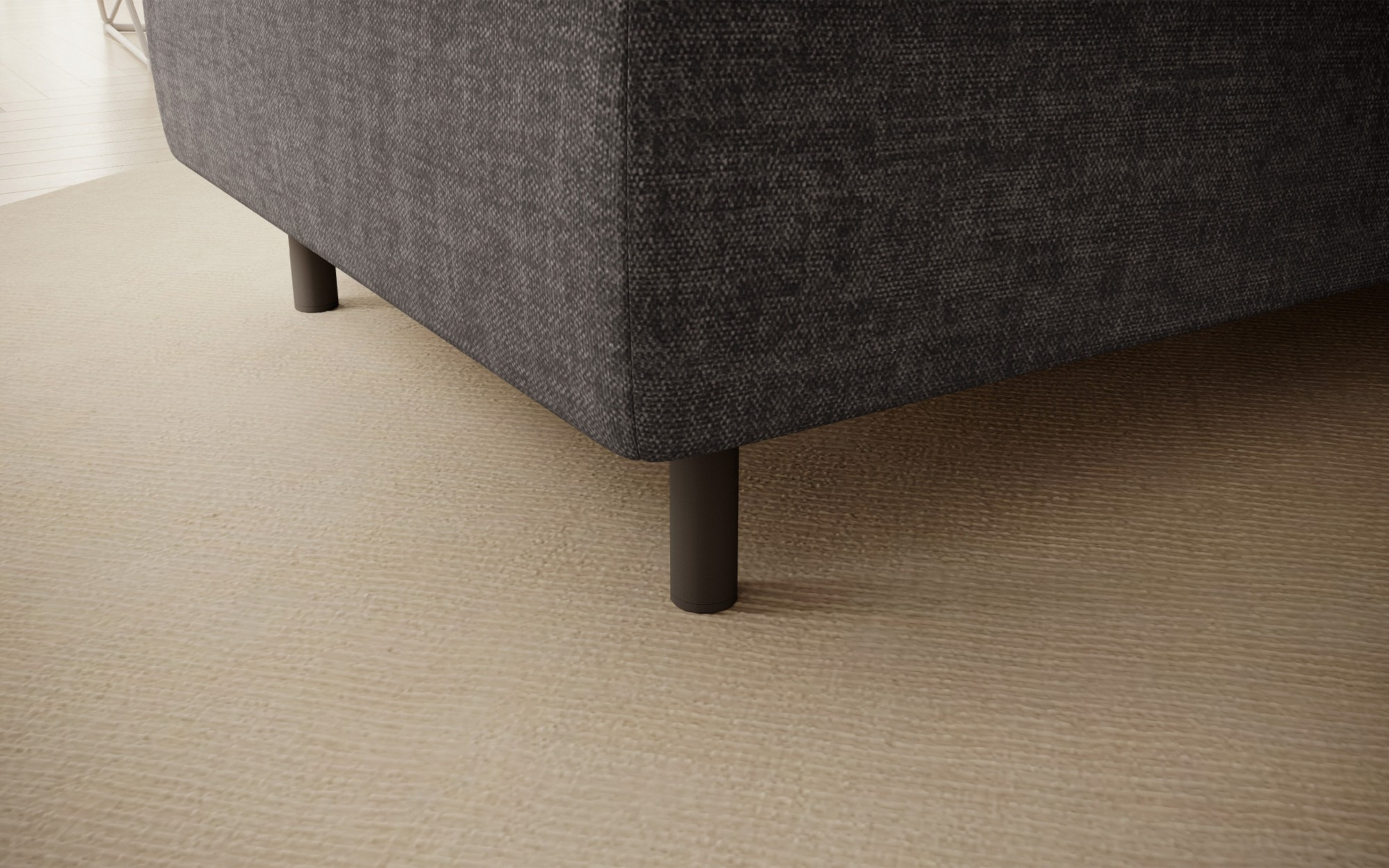 Gomsi puf s rozměry 45 cm (výška) x 72 cm (šířka) x 104 cm (délka) je elegantní a funkční kus nábytku. Taburet má pevné černé kovové nohy, které zajišťují stabilitu a dodávají moderní vzhled. Vestavěný úložný prostor na ložní prádlo umožňuje praktické uložení dalších věcí, což z něj činí ideální řešení pro malé prostory, kde se počítá každý centimetr. Pohodlí při používání zajišťují vysoce kvalitní materiály, jako je HR pěna a T2130 pěna, které zaručují komfort a odolnost. Povrchová úprava taburetu je estetická a moderní, což z něj činí ideální doplněk pro různé styly interiérového designu.