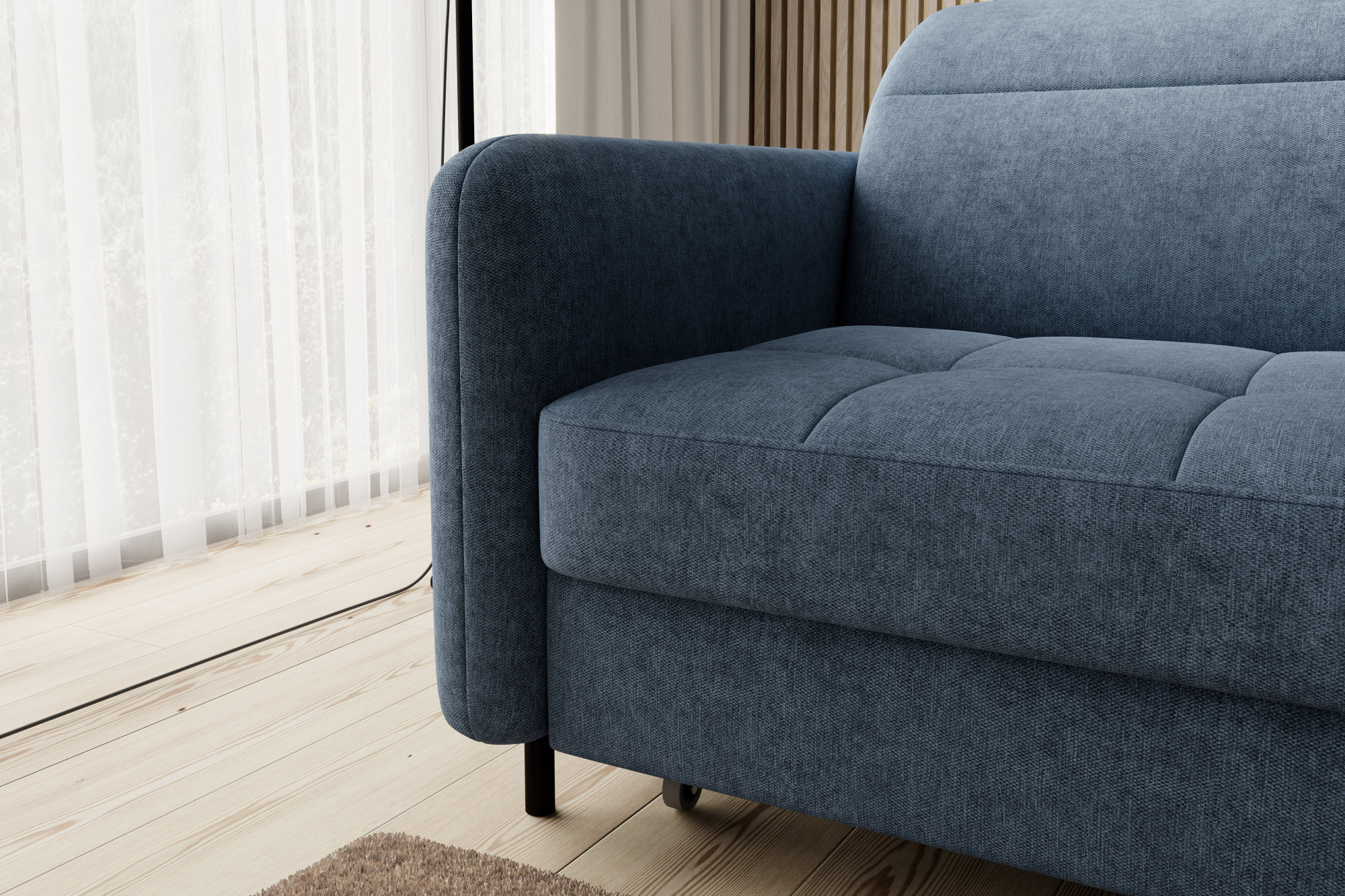 Tato rohová sedací souprava je navržena s ohledem na vaše potřeby. Disponuje praktickým úložným prostorem, který vám umožní snadno uschovat deky, polštáře nebo jiné předměty, které chcete mít po ruce, ale zároveň je mít úhledně uklizené. Rozkládací mechanismus promění sedací soupravu v pohodlné lůžko s plochou na spaní o rozměrech 128 x 200 cm, což je ideální pro hosty nebo pro příležitostné přespání.