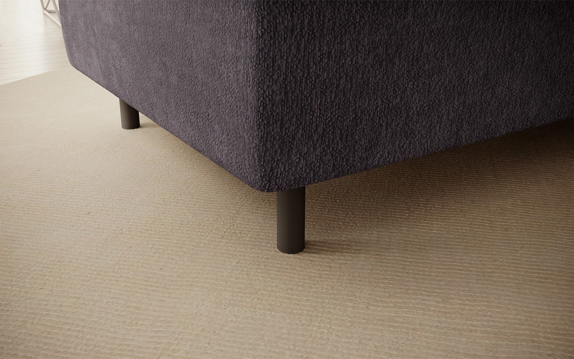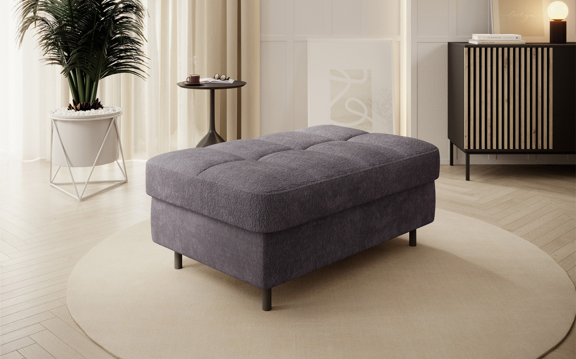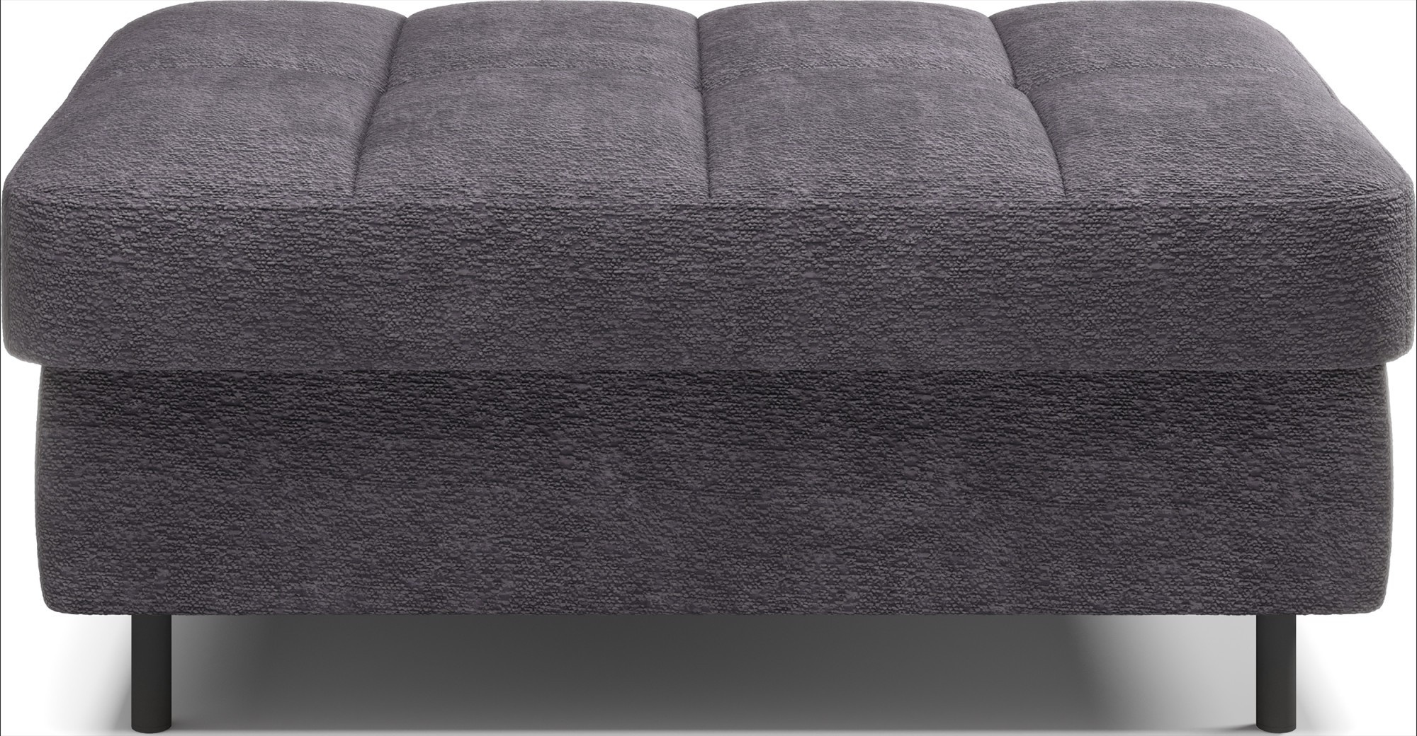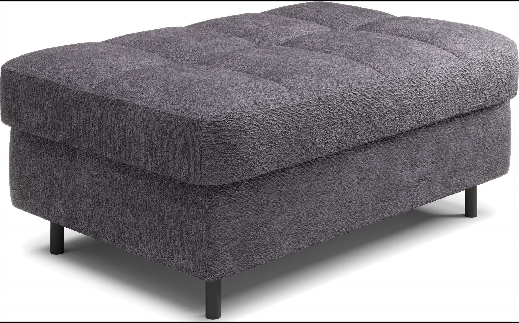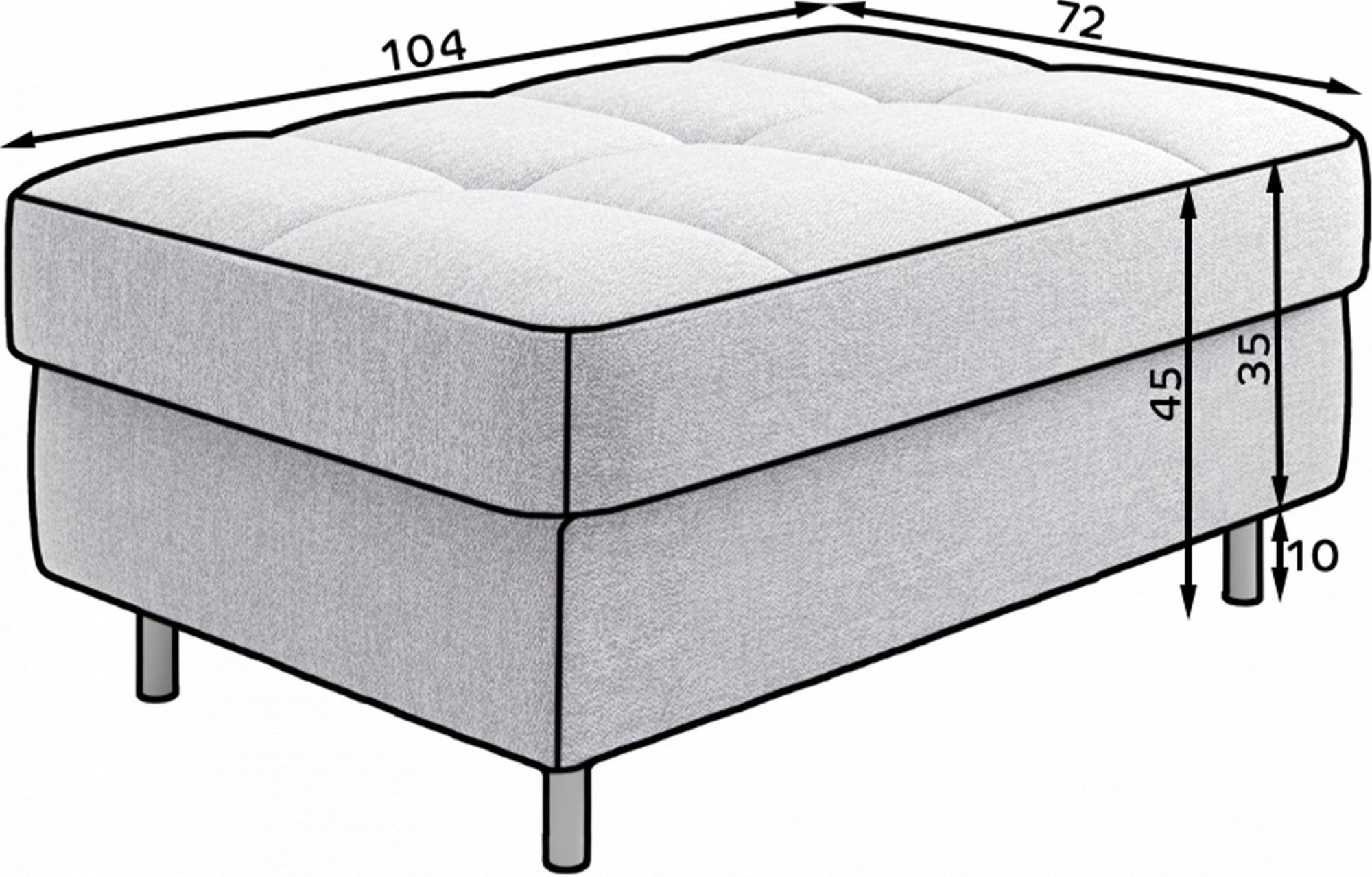 Gomsi puf s rozměry 45 cm (výška) x 72 cm (šířka) x 104 cm (délka) je elegantní a funkční kus nábytku. Taburet má pevné černé kovové nohy, které zajišťují stabilitu a dodávají moderní vzhled. Vestavěný úložný prostor na ložní prádlo umožňuje praktické uložení dalších věcí, což z něj činí ideální řešení pro malé prostory, kde se počítá každý centimetr. Pohodlí při používání zajišťují vysoce kvalitní materiály, jako je HR pěna a T2130 pěna, které zaručují komfort a odolnost. Povrchová úprava taburetu je estetická a moderní, což z něj činí ideální doplněk pro různé styly interiérového designu.