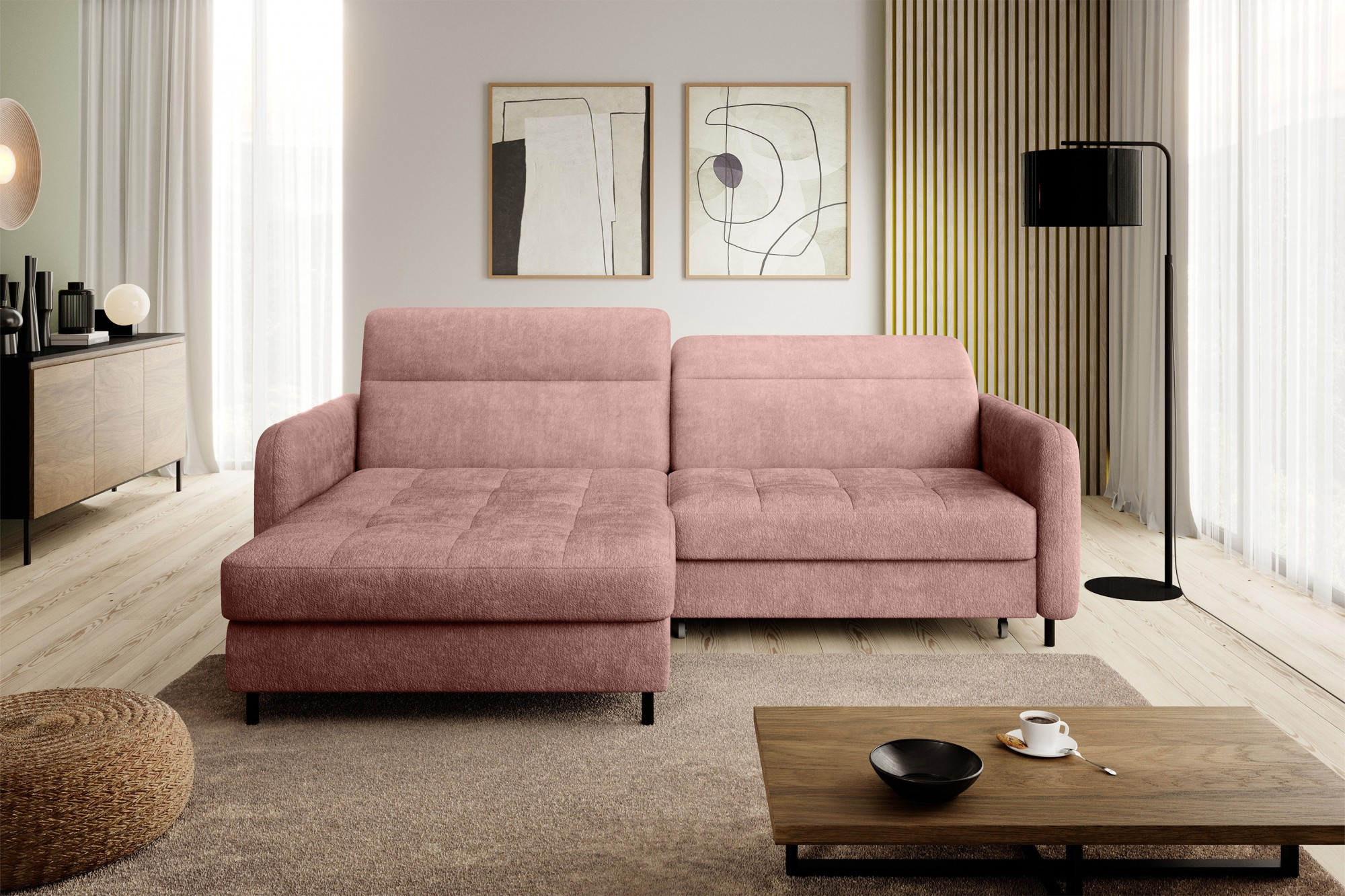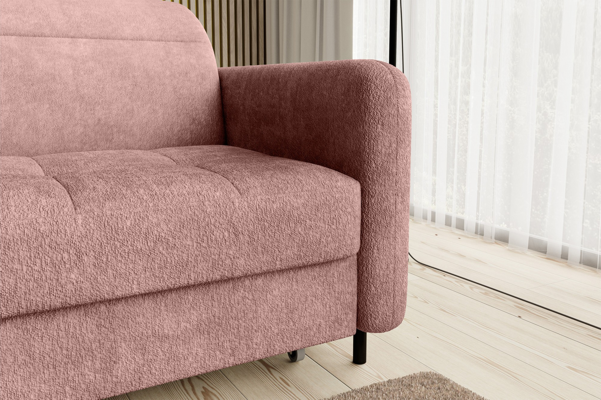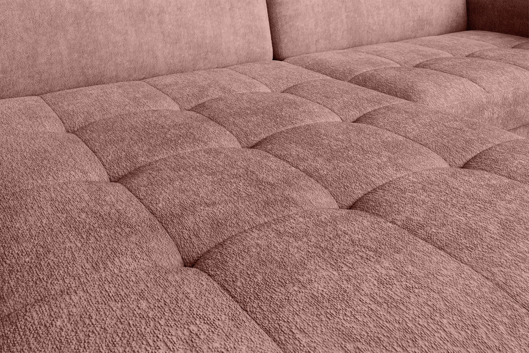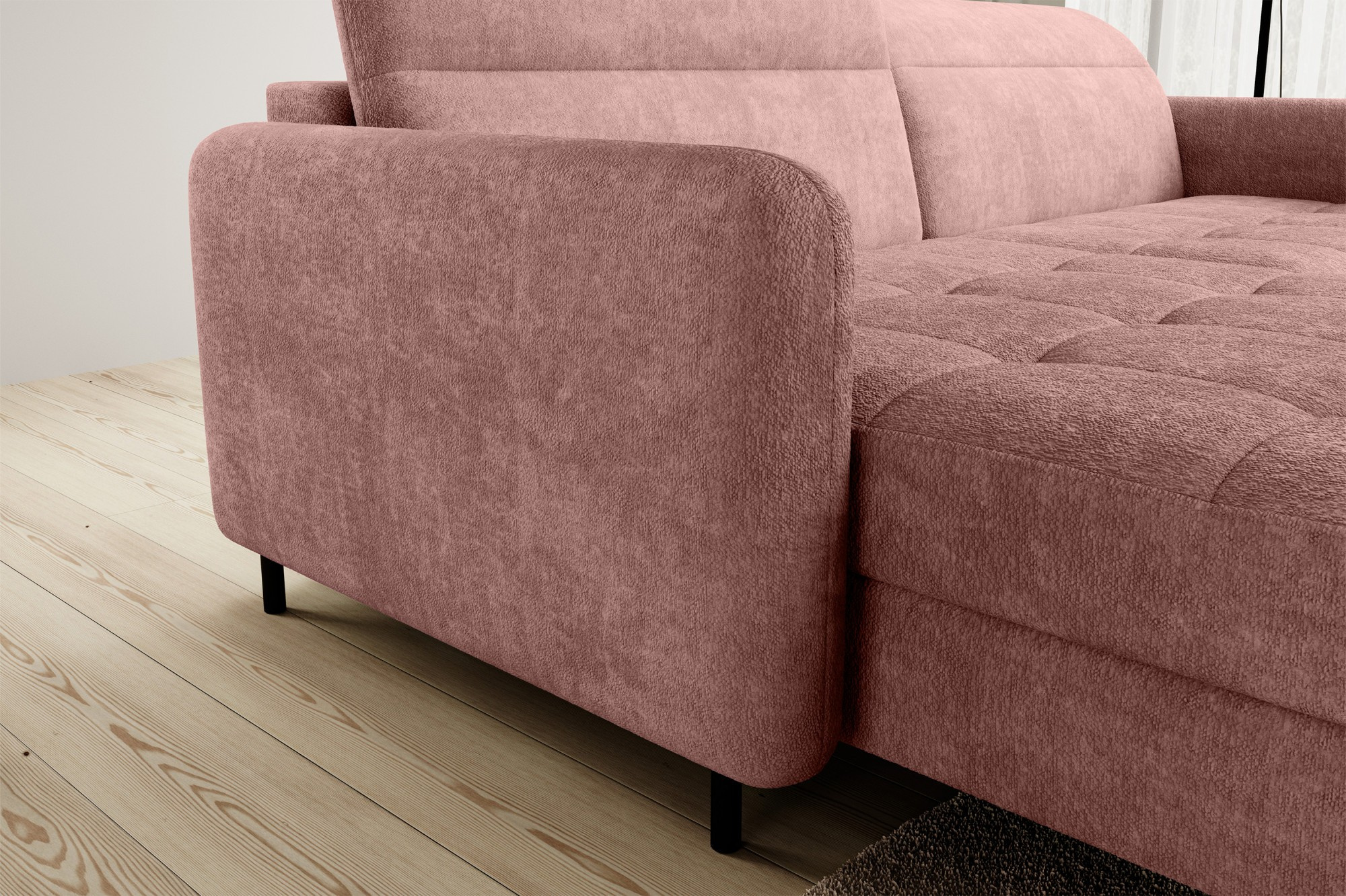 Rohová sedací souprava Gomsi s rozměry 228x165x100 centimetrů dokonale doplní interiér. Prošívané sedáky a černé kovové nohy mu dodávají jedinečný vzhled, zatímco čalouněná záda produktu ho činí univerzálním. Perfektně zapadne jak do moderních, tak elegantních interiérů. Díky spací funkci s plochou 128x200 centimetrů si můžete odpočinout a relaxovat při sledování svých oblíbených filmů a seriálů. Pohodlí vašeho každodenního odpočinku zajistí nejen funkce spánku, ale také vysoce elastická HR pěna a vysoce kvalitní vlnité pružiny typu B použité v sedadlech, které jim dodávají pružnost. Dalším praktickým prvkem je úložný box na lůžkoviny o rozměrech 117x97x15 cm, který vám pomůže uložit další deky, polštáře a ložní prádlo.
