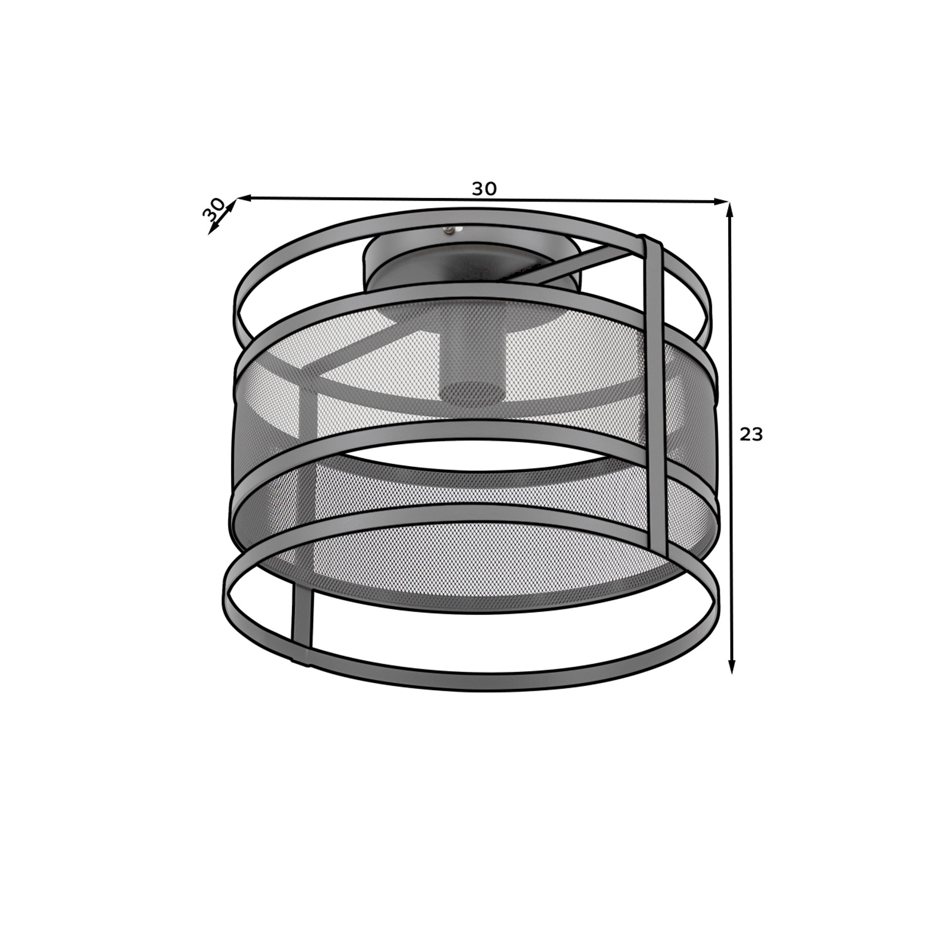 Stropní světlo je elegantní a minimalistický produkt, který se bez problémů začlení do různých interiérových prostor. Je vyroben z odolné oceli a má rozměry 30 cm na šířku, 30 cm na délku a 23 cm na výšku. Stínidlo i základna jsou také vyrobeny ze stejného ocelového materiálu, což zajišťuje pevnou konstrukci.Stropní svítidlo má jeden světelný bod, který zajišťuje rovnoměrné osvětlení celé místnosti. Nemá nastavitelnou výšku a je namontován přímo na strop.Světelný zdroj není součástí balení a žárovku E27 je třeba zakoupit samostatně. Maximální světelný výkon je 15 W. Stropní svítidlo má těsnicí třídu IP20, což naznačuje jeho vhodnost pro vnitřní použití.Výrobek je zabalen v kartonové krabici s ochrannou fólií a rozměry balení jsou 33x33x25 cm. Váží přibližně 1.7 kg.Pokyny k instalaci jsou přiloženy, aby usnadnily montáž stropního světla.