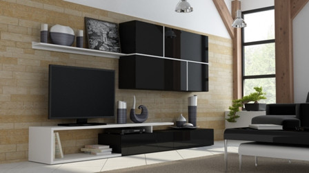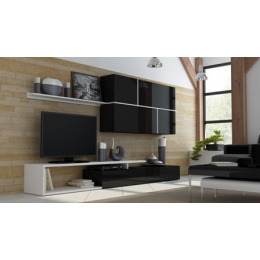 Tv komoda GOYA, černá/lesklá černá/bílá