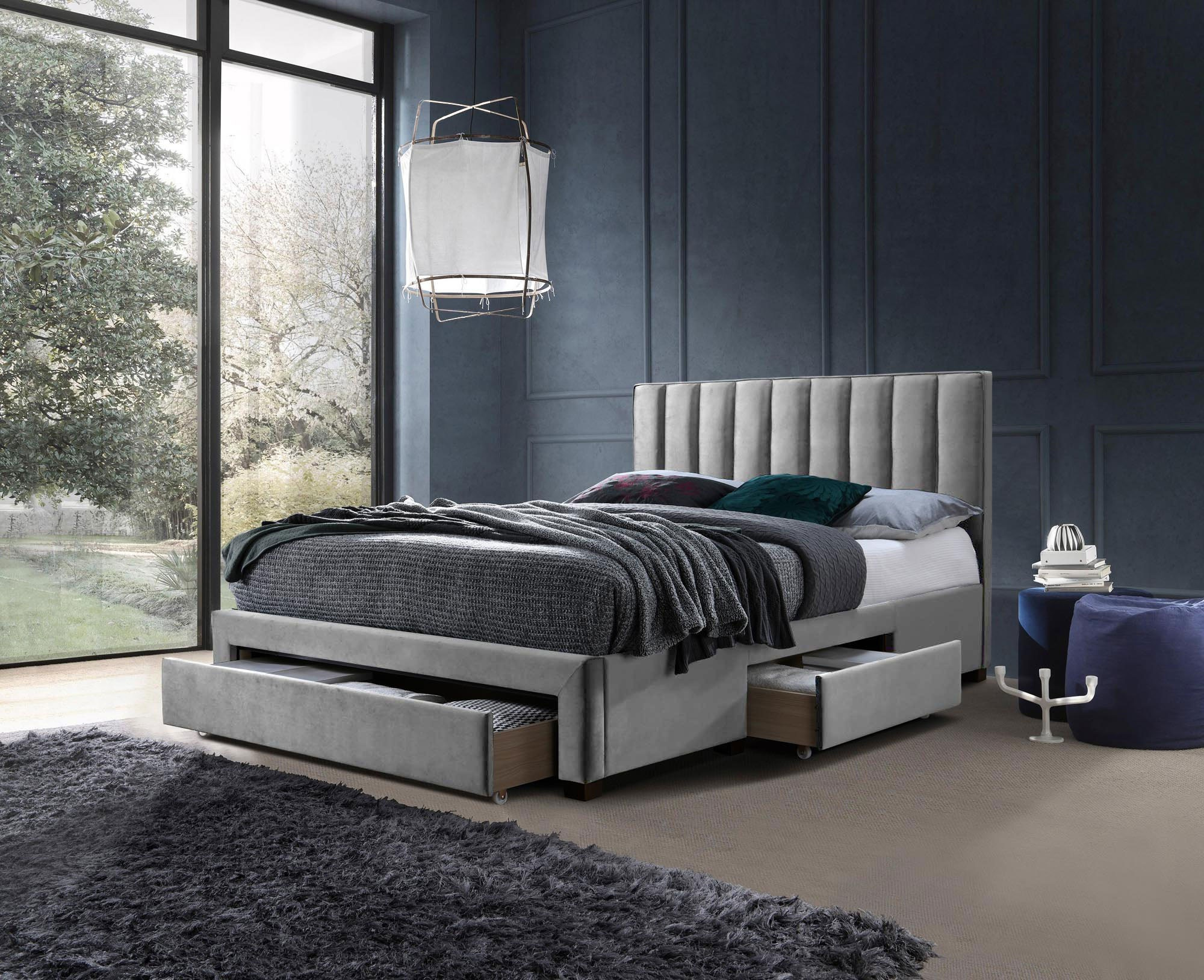 Postel GRACE 160, Šedý Velvet - Elegance a Funkčnost v Jednom
