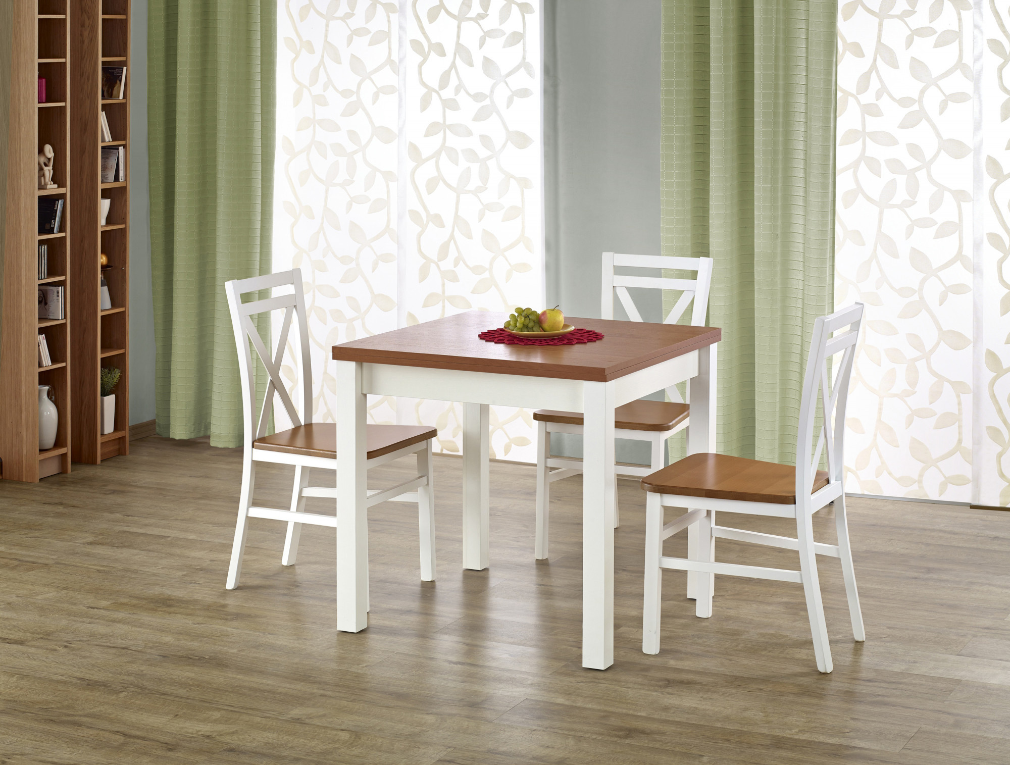 rozkládací stůl, rozměry: 80÷160/80/76 cm, materiál: deska - laminovaná deska s ABS hranami, nohy - laminovaná MDF, barva: olše / bílá