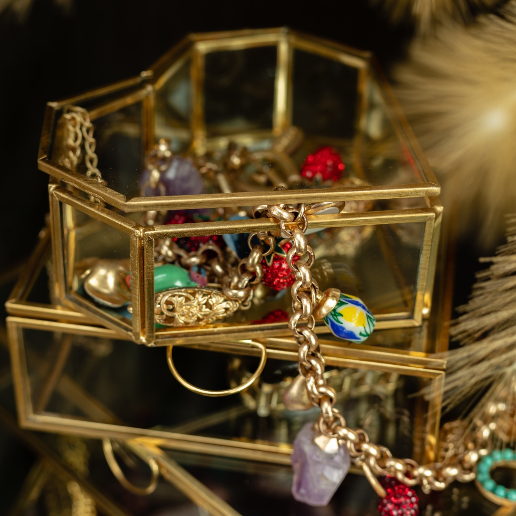 Materiál použitý při výrobě Šperkovnice ze série GRAZIA je kov a sklo. Surovina, kterou je kov, se vyznačuje vysokou odolností vůči mechanickému poškození, zatímco sklo má stejně vysokou chemickou odolnost, což znamená, že bez ohledu na látku uvnitř - materiál neprosákne zápachem.