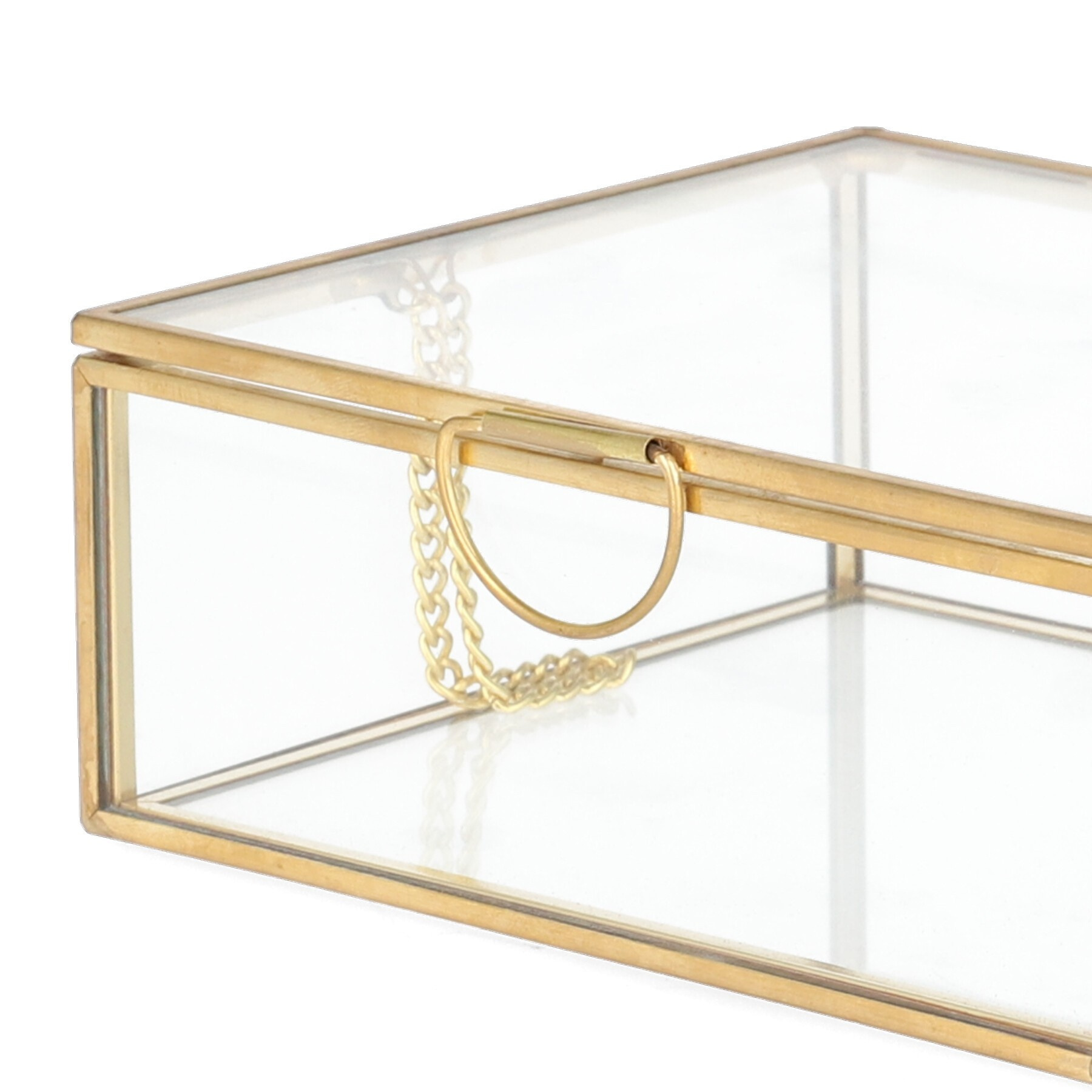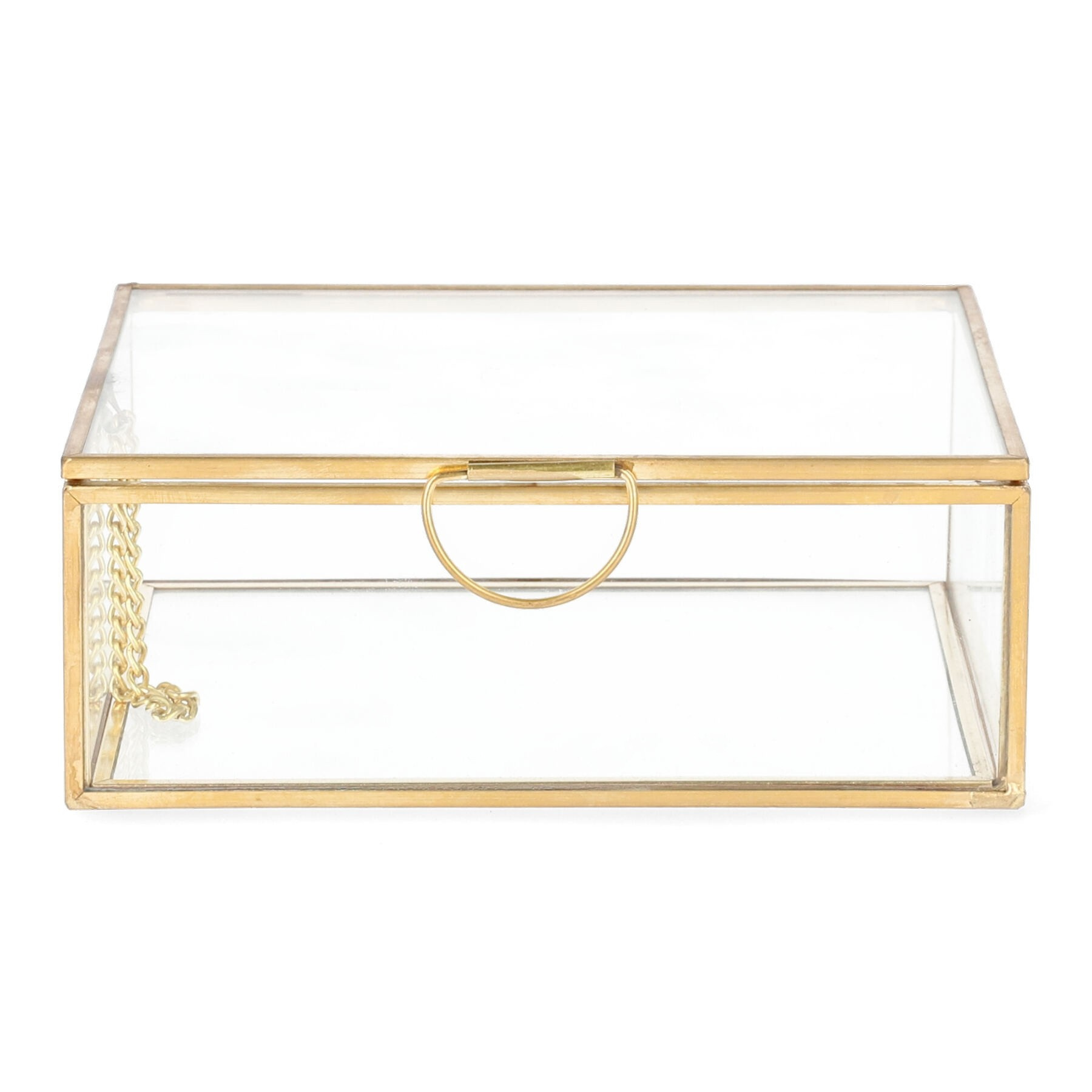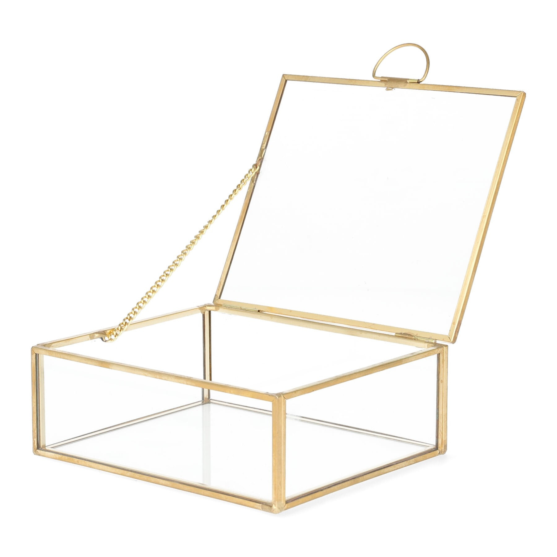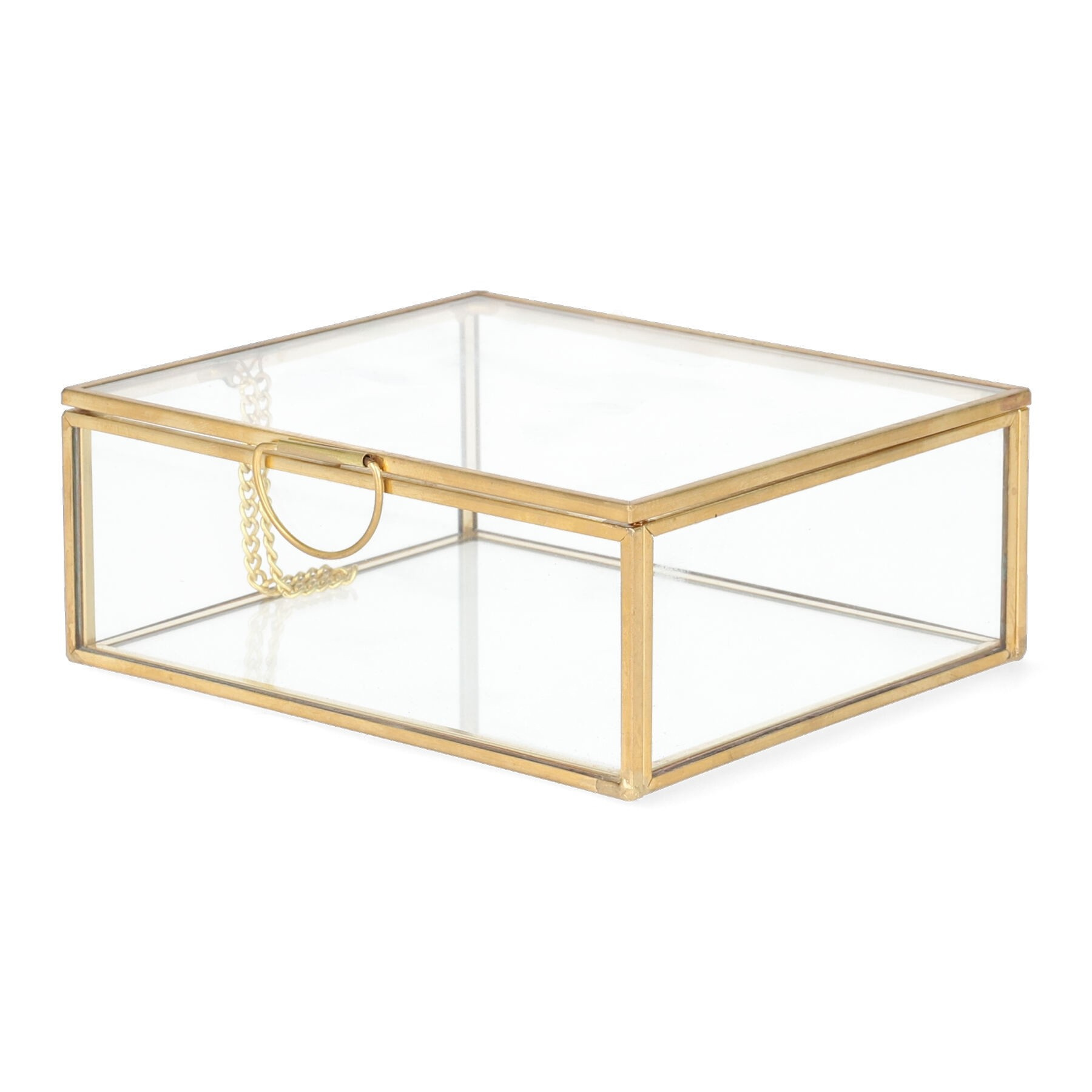 Skrinka GRAZIA díky své průhledné barvě získává optický prostor a především velmi vysokou estetiku. Produkt je celý vyroben z průhledného skla a zlatých kovových rámečků. Klapka se otevírá pomocí drobných, téměř neviditelných pantů, navíc z pravé strany chrání klapku před úplným odklopením dozadu zlatý řetízek. Na přední straně krabičky se nachází úchyt usnadňující otevření šperkovnice a doplňující design. Celý má rozměry 13x11x5 cm. Produkt je k dispozici také ve větší velikostní variantě.
