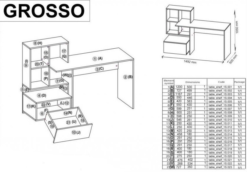 Psací stůl GROSSO je ideální volbou pro studenty, profesionály i domácí uživatele, kteří hledají kvalitní a stylový pracovní prostor. Jeho univerzální design a praktické rozměry z něj činí perfektní volbu pro každou domácnost. Ať už potřebujete místo pro studium, práci z domova nebo kreativní činnosti, stůl GROSSO vám poskytne vše, co potřebujete.