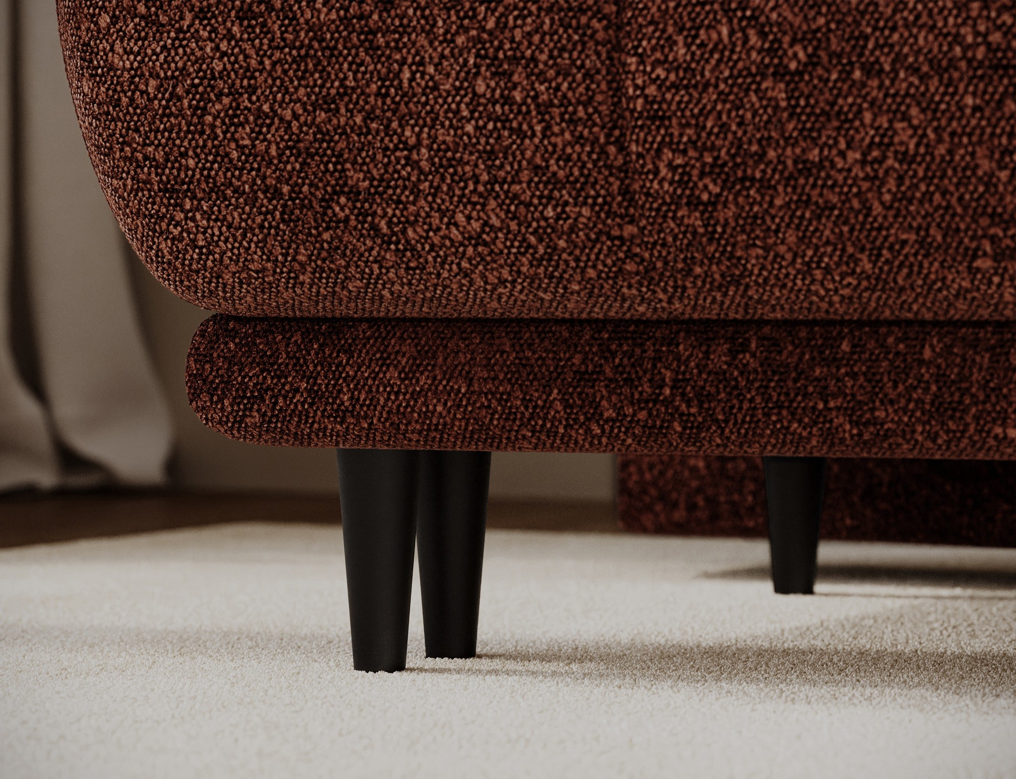 Pohovka je dodávána se dvěma sundávacími opěrnými polštáři, jejichž výplň tvoří polyuretanový granulát. Tyto polštáře nejenže zvyšují komfort, ale také umožňují snadnou údržbu a přizpůsobení vzhledu pohovky podle vašich představ.