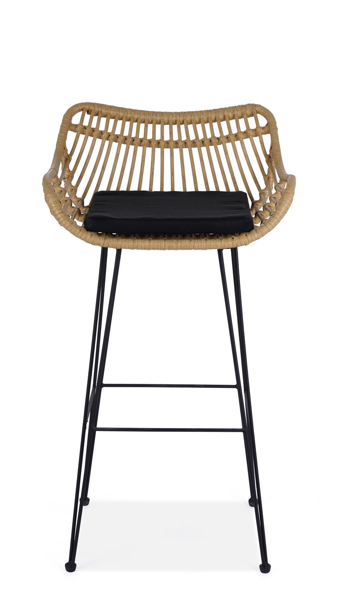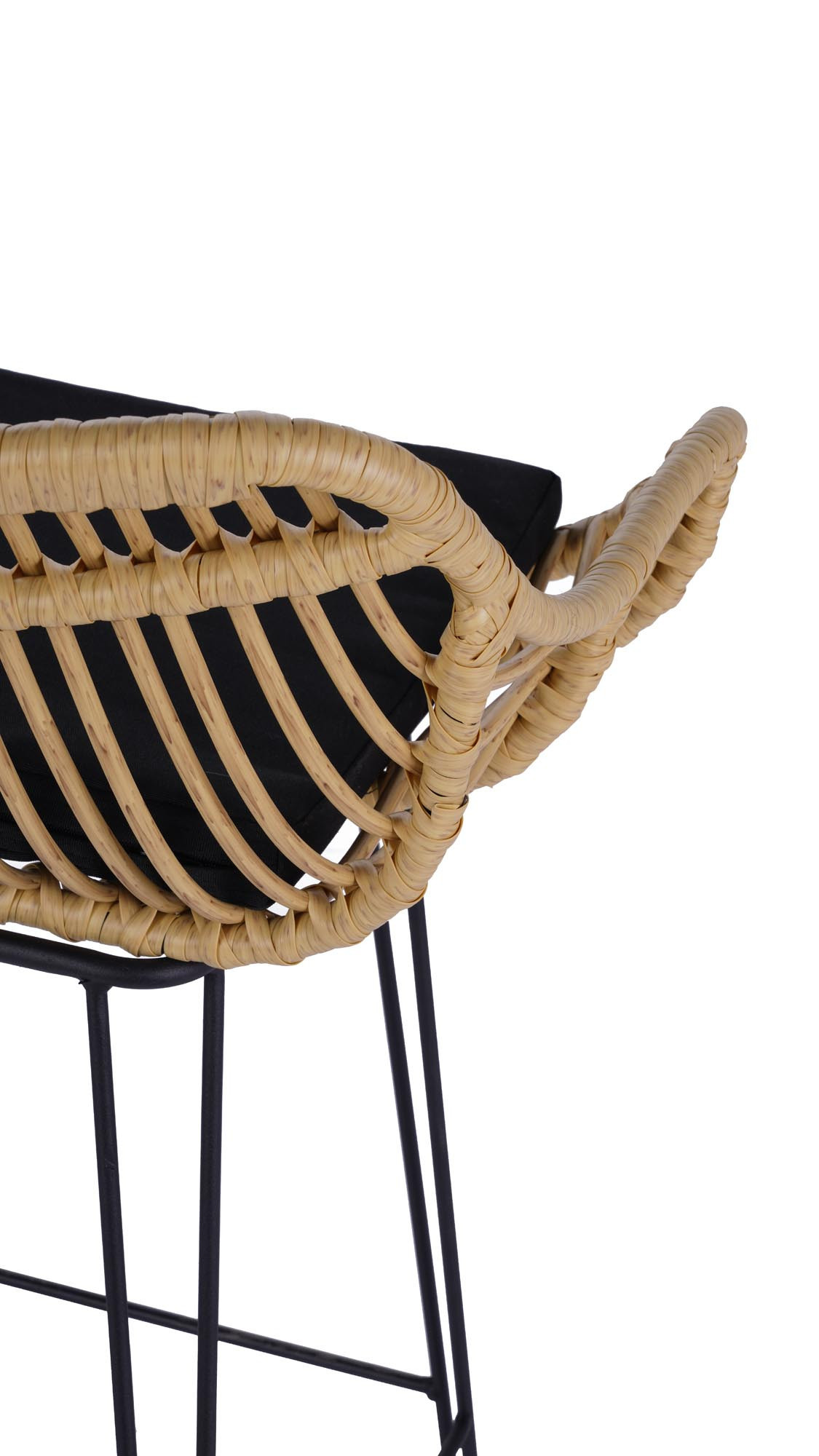 rozměry: 54/52/99/74 cm, Materiál: tkanina / umělý ratan / práškově lakovaná ocel, Barva: přírodní - černá