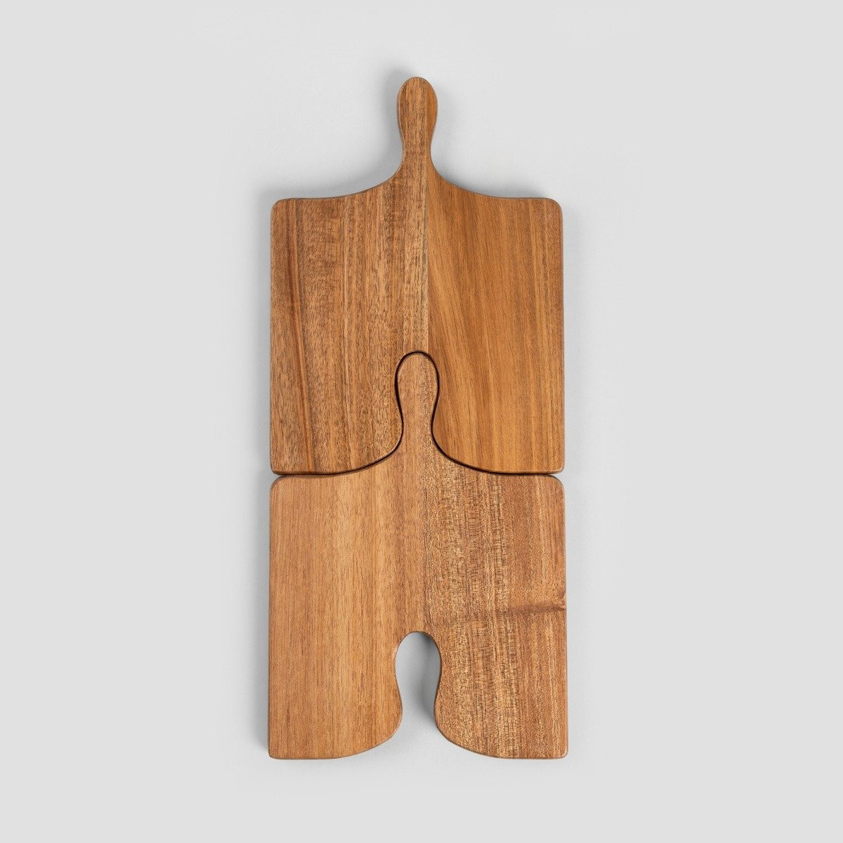 Servírování občerstvení získává nový rozměr s puzzle sadou MOOKA. Vyrobené ze dřeva, desky tvoří ucelený celek, který lze libovolně kombinovat a přizpůsobit velikost povrchu podle podávaných lahůdek. Přirozená struktura jim dodává jedinečný, elegantní charakter.