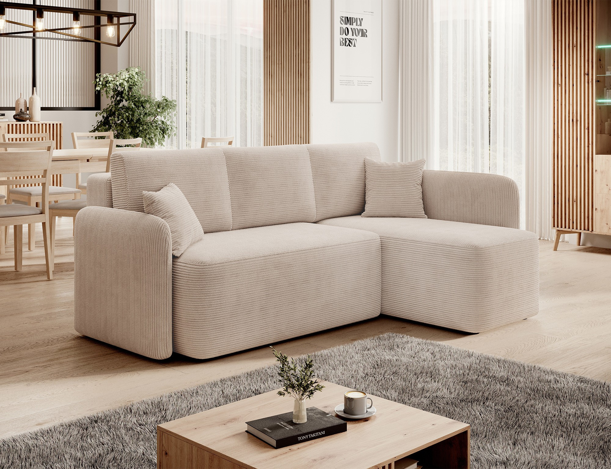 Rohová sedací souprava HADSON je vybavena praktickým úložným prostorem, který vám umožní snadno uschovat deky, polštáře nebo jiné drobnosti, které chcete mít po ruce, ale zároveň je mít úhledně uklizené. Díky této funkci bude váš obývací pokoj vždy vypadat upraveně a organizovaně.