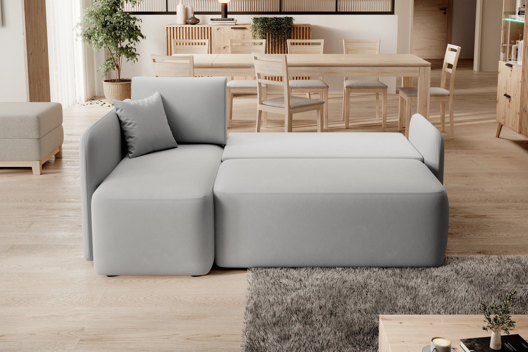 Rohová sedací souprava HADSON se pyšní moderním designem, který se snadno začlení do jakéhokoli interiéru. Její kompaktní rozměry - šířka 206 cm, výška 89 cm a hloubka 150 cm - zajišťují, že se vejde i do menších prostor, aniž by ztratila na svém komfortu a stylu.