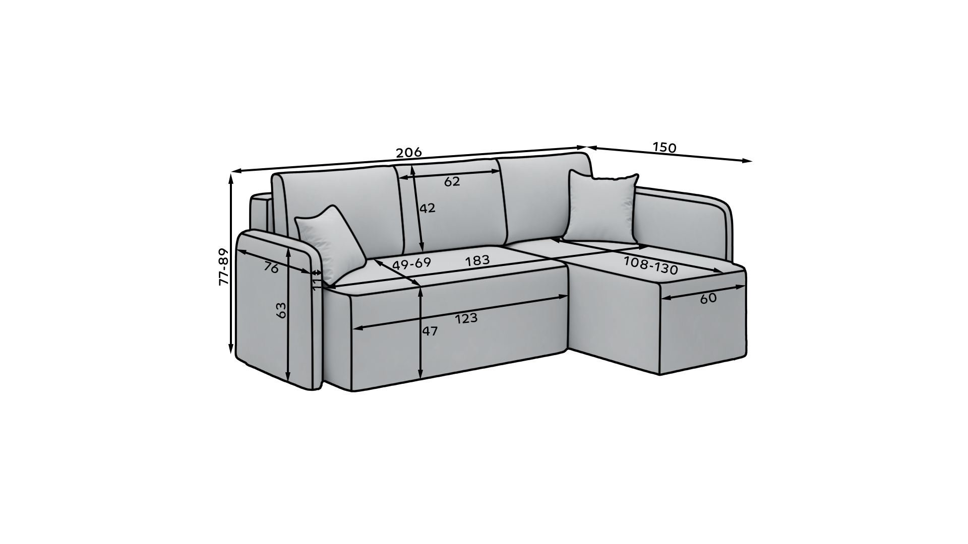 Rohová sedací souprava HADSON se pyšní moderním designem, který se snadno začlení do jakéhokoli interiéru. Její kompaktní rozměry - šířka 206 cm, výška 89 cm a hloubka 150 cm - zajišťují, že se vejde i do menších prostor, aniž by ztratila na svém komfortu a stylu.
