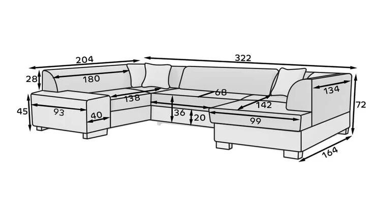 S celkovou šířkou 322 cm, výškou 72 cm a hloubkou 204 cm nabízí sedací souprava HAVANA dostatek prostoru pro celou rodinu. Její rohový tvar je navržen tak, aby efektivně využil prostor v místnosti a poskytl vám maximální pohodlí. Výška sedu 36 cm je optimální pro pohodlné sezení a snadné vstávání.