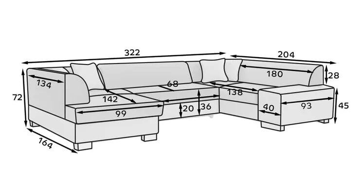 S celkovou šířkou 322 cm, výškou 72 cm a hloubkou 204 cm nabízí sedací souprava HAVANA dostatek prostoru pro celou rodinu. Její rohový tvar je navržen tak, aby efektivně využil prostor v místnosti a poskytl vám maximální pohodlí. Výška sedu 36 cm je optimální pro pohodlné sezení a snadné vstávání.