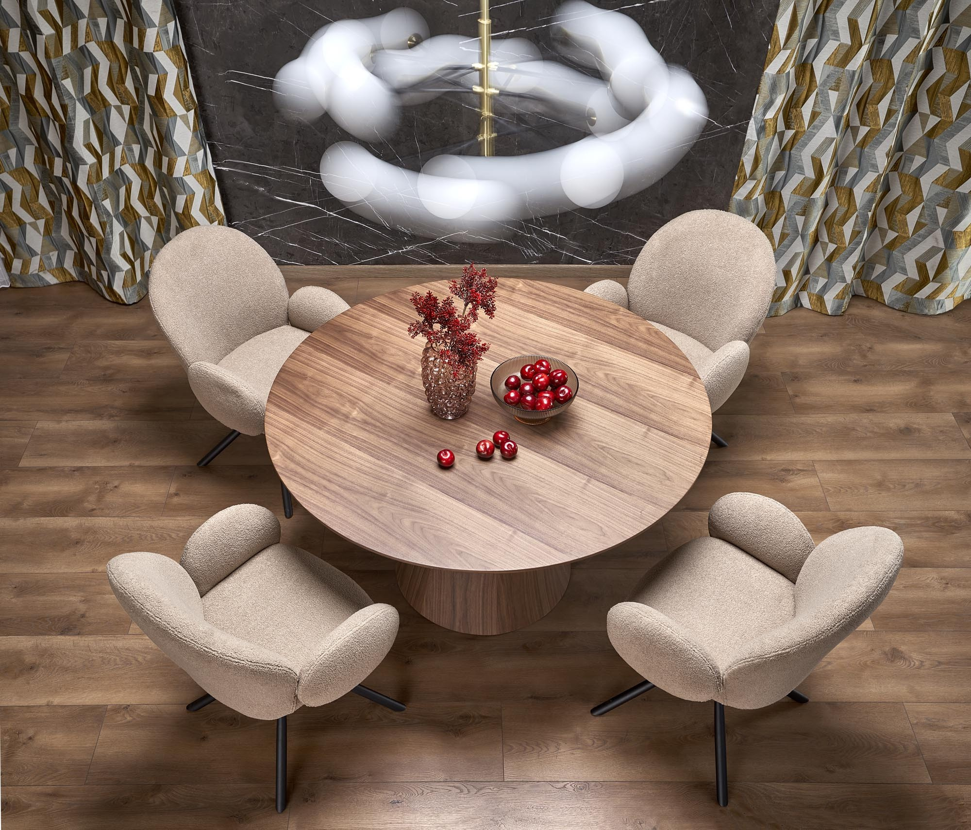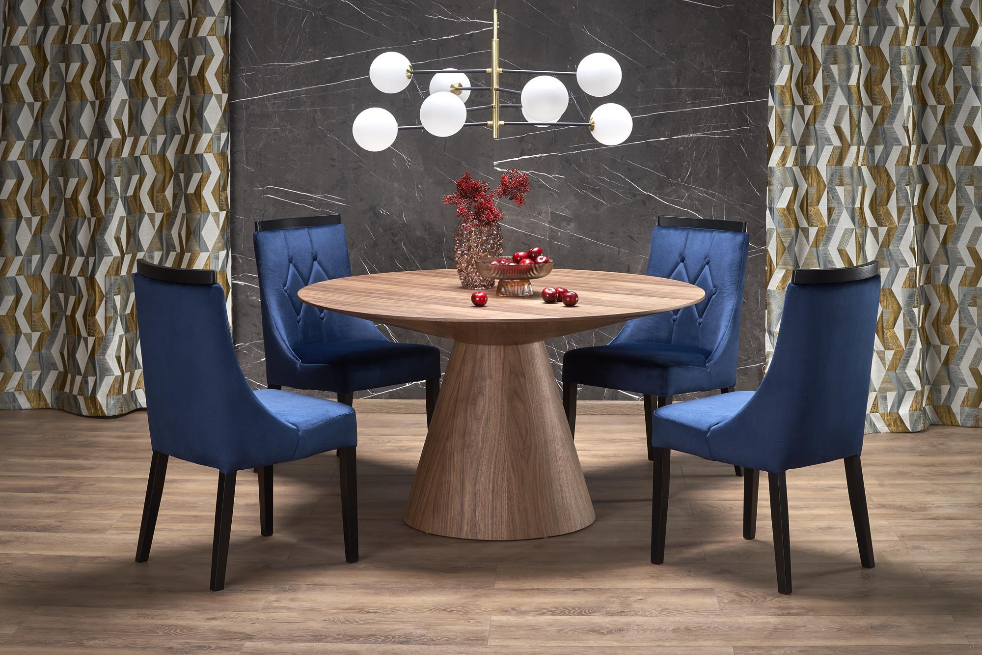 Jídelní stůl HENDERSON vyniká svým elegantním a moderním designem, který se hodí do každého interiéru. Ořechová dýha dodává stolu přírodní a teplý vzhled, který přináší do vašeho domova pocit útulnosti a pohody. Jeho čisté linie a jednoduchý tvar z něj činí univerzální kousek, který se snadno sladí s různými typy židlí a dekorací.