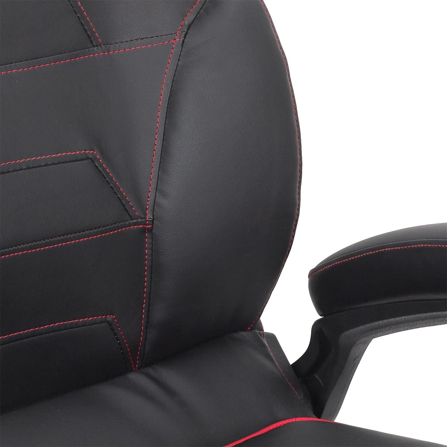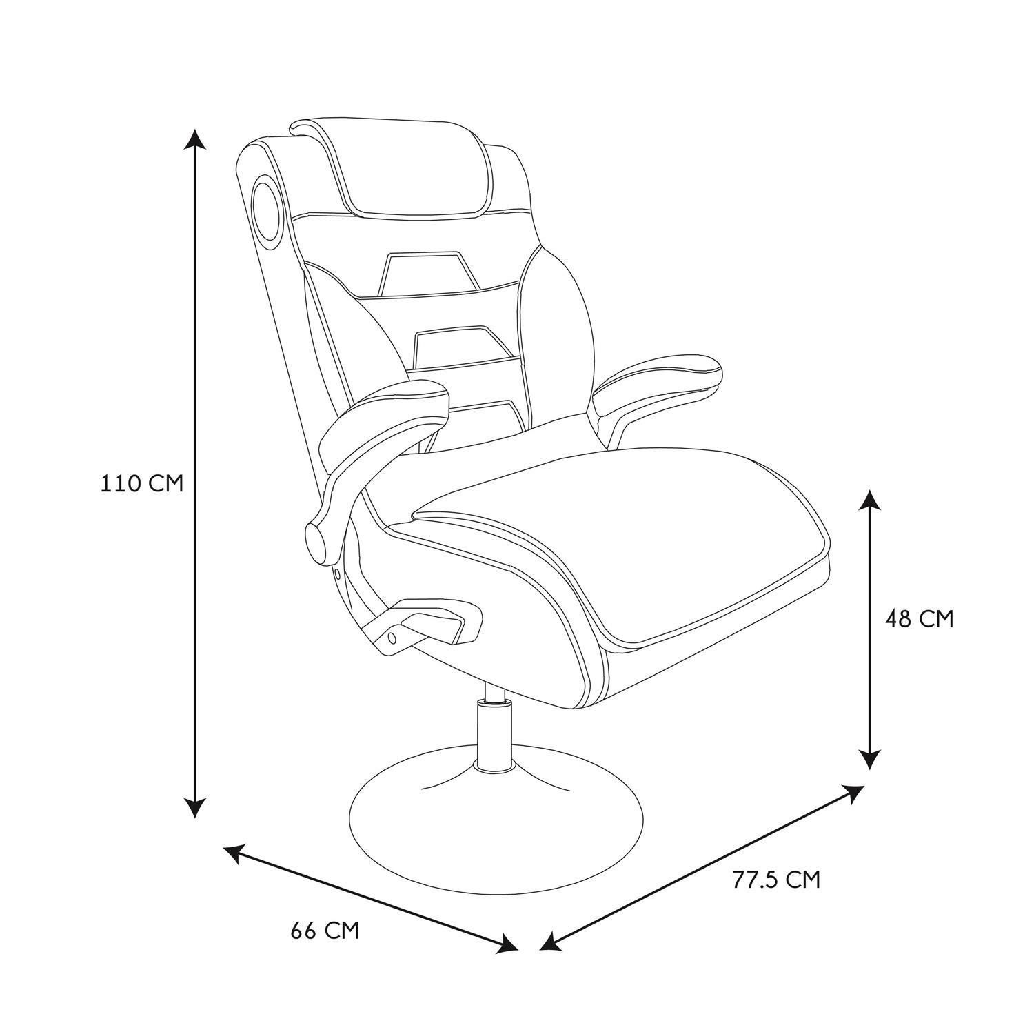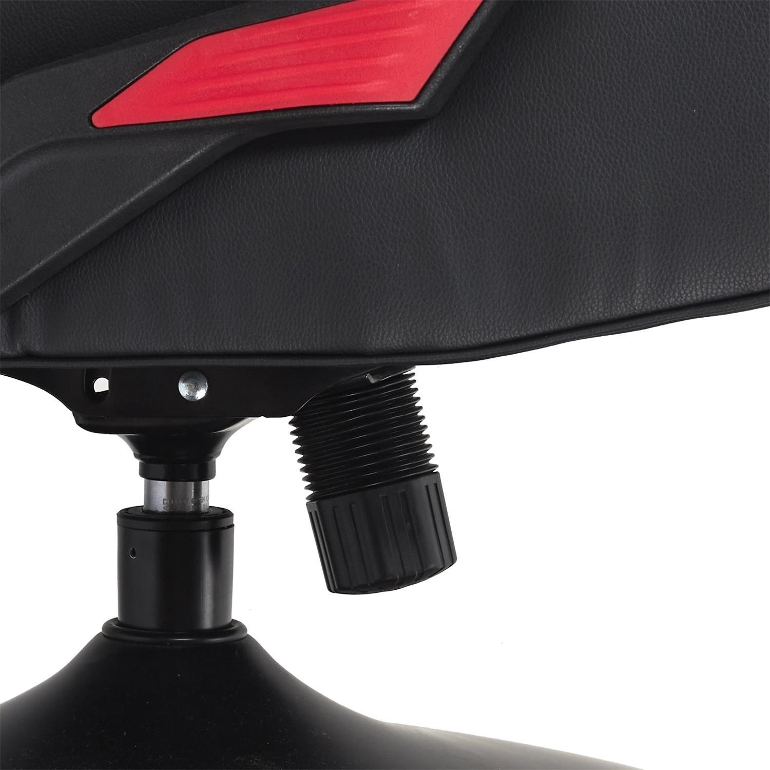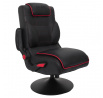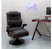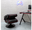 Herní křeslo s možností sklopení opěradla je ideální křeslo nejen pro hraní, ale také pro práci na home office v malém prostoru. Díky křeslu, které po složení můžeme umístit pod stůl, šetříme místo v našem bytě. Křeslo má funkci otáčení. Max. zatížení 110 kg. Vyžaduje montáž. Křeslo bylo vybaveno područkami, které můžeme zvednout. Chybí regulace výšky. Hustota tapírské pěny 24 kg/m3. Základna křesla kovová, práškově lakovaná na černo. Sedák a opěradlo v látce eko-kůže s červenými vložkami.