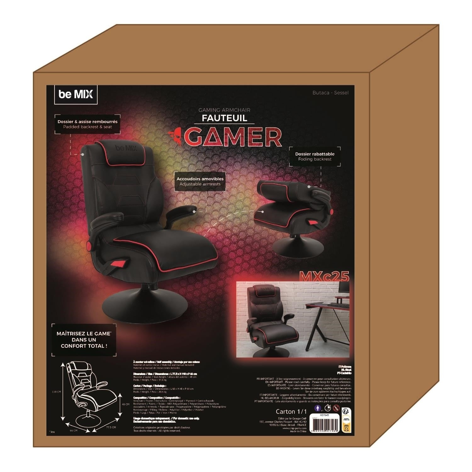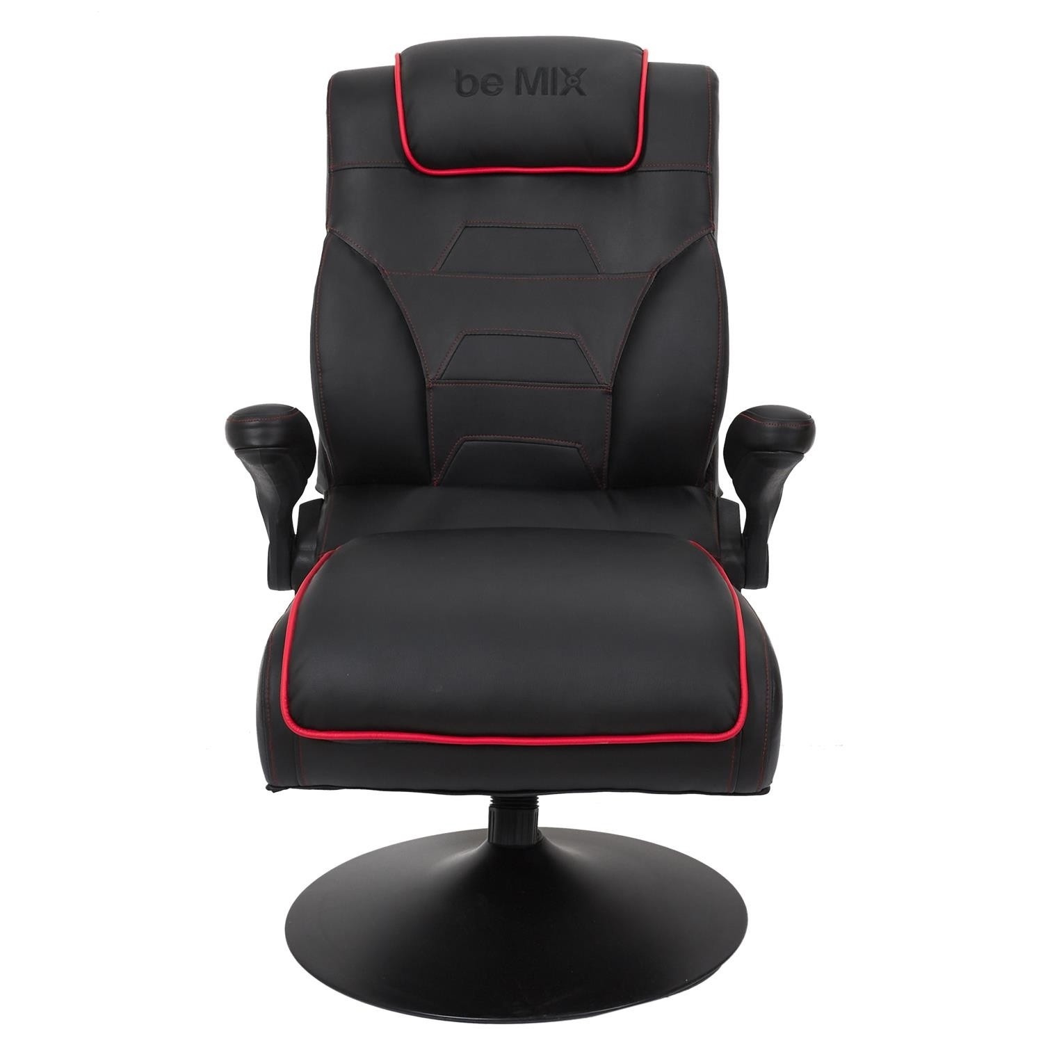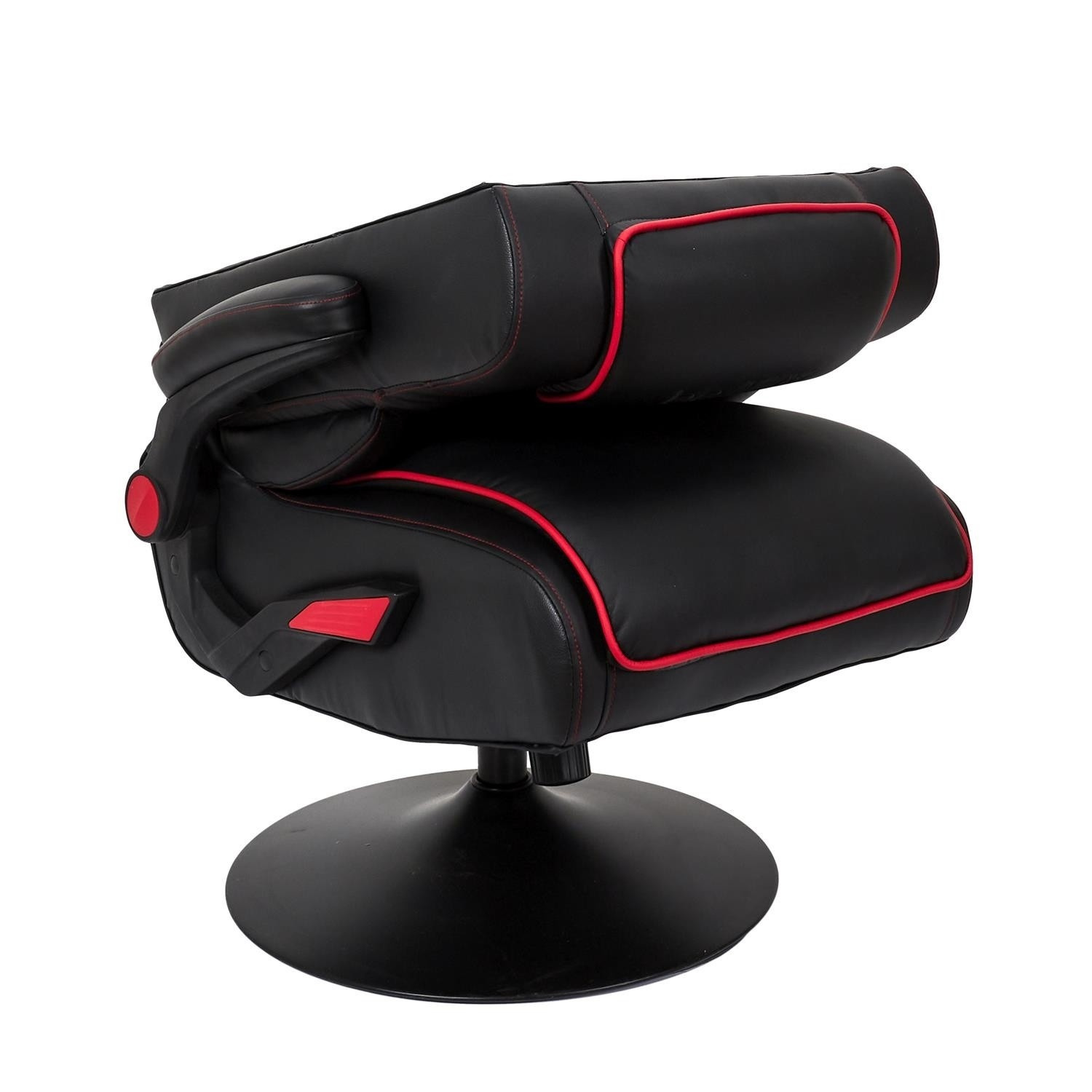 Herní křeslo s možností sklopení opěradla je ideální křeslo nejen pro hraní, ale také pro práci na home office v malém prostoru. Díky křeslu, které po složení můžeme umístit pod stůl, šetříme místo v našem bytě. Křeslo má funkci otáčení. Max. zatížení 110 kg. Vyžaduje montáž. Křeslo bylo vybaveno područkami, které můžeme zvednout. Chybí regulace výšky. Hustota tapírské pěny 24 kg/m3. Základna křesla kovová, práškově lakovaná na černo. Sedák a opěradlo v látce eko-kůže s červenými vložkami.
